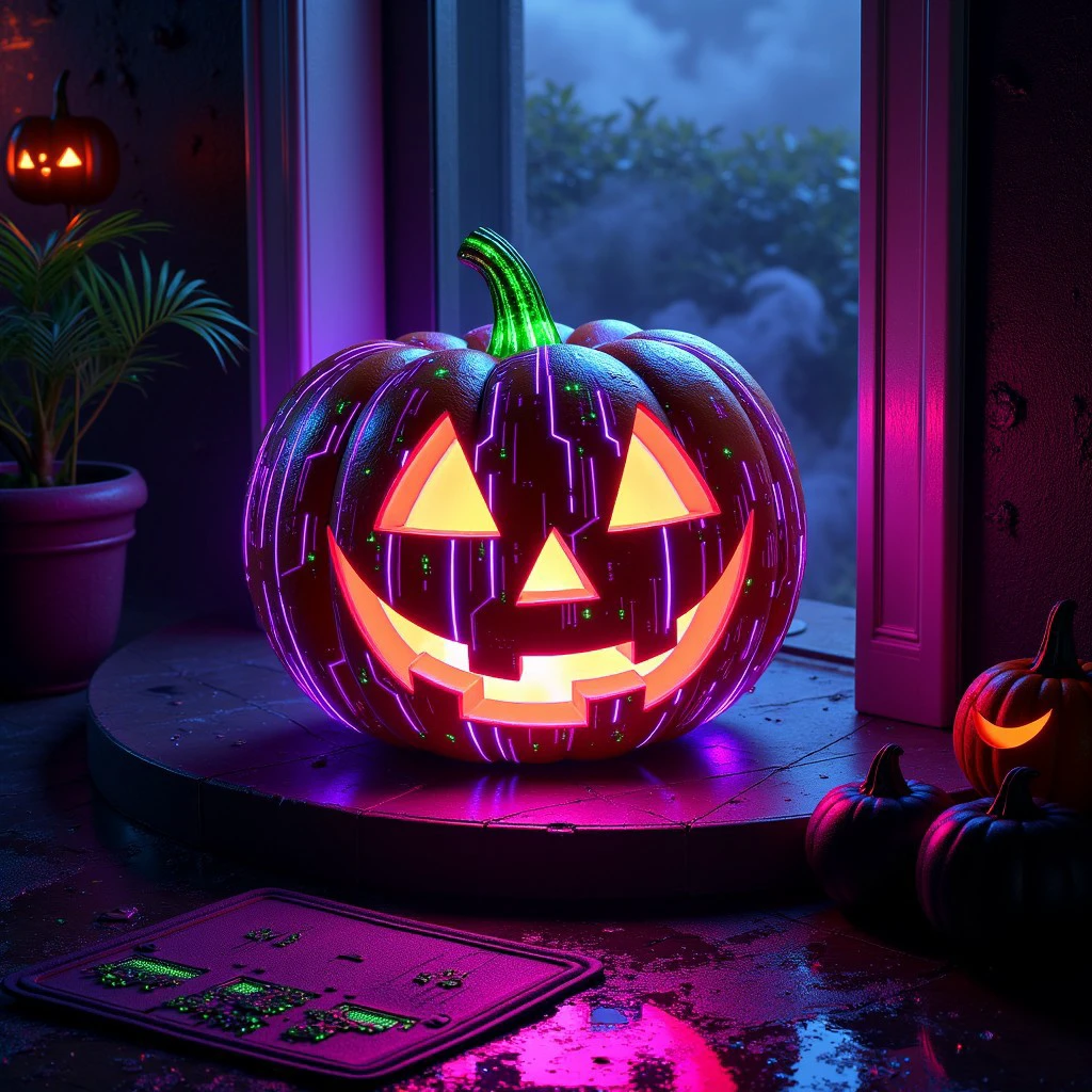 Creating futuristic Halloween scenes with glowing skeletons and digital pumpkins