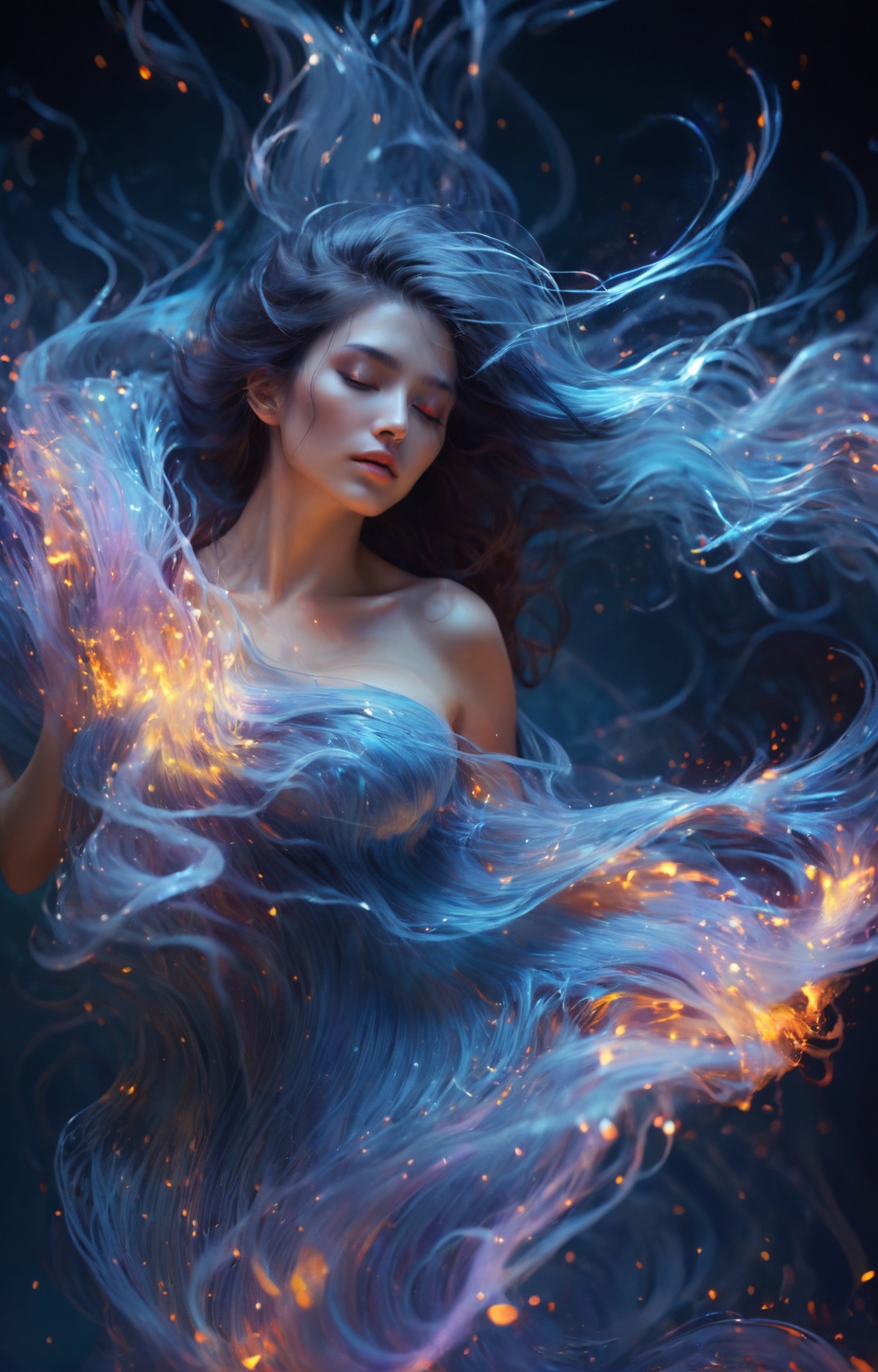 用于生成各种粒子形态以及一些线性纠缠形态的画风模型,除了召唤词SDS_Particle_Flow ,还可添加我下文总结的高频词汇(或者自己说些骚话)或者直接参考例图。在需要特定形状内容时使用controlnet,更多玩法大家可以自行探索,欢迎发帖分享。