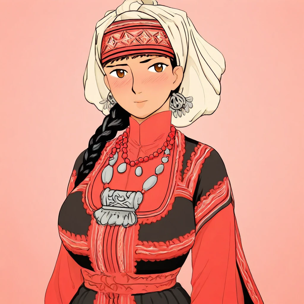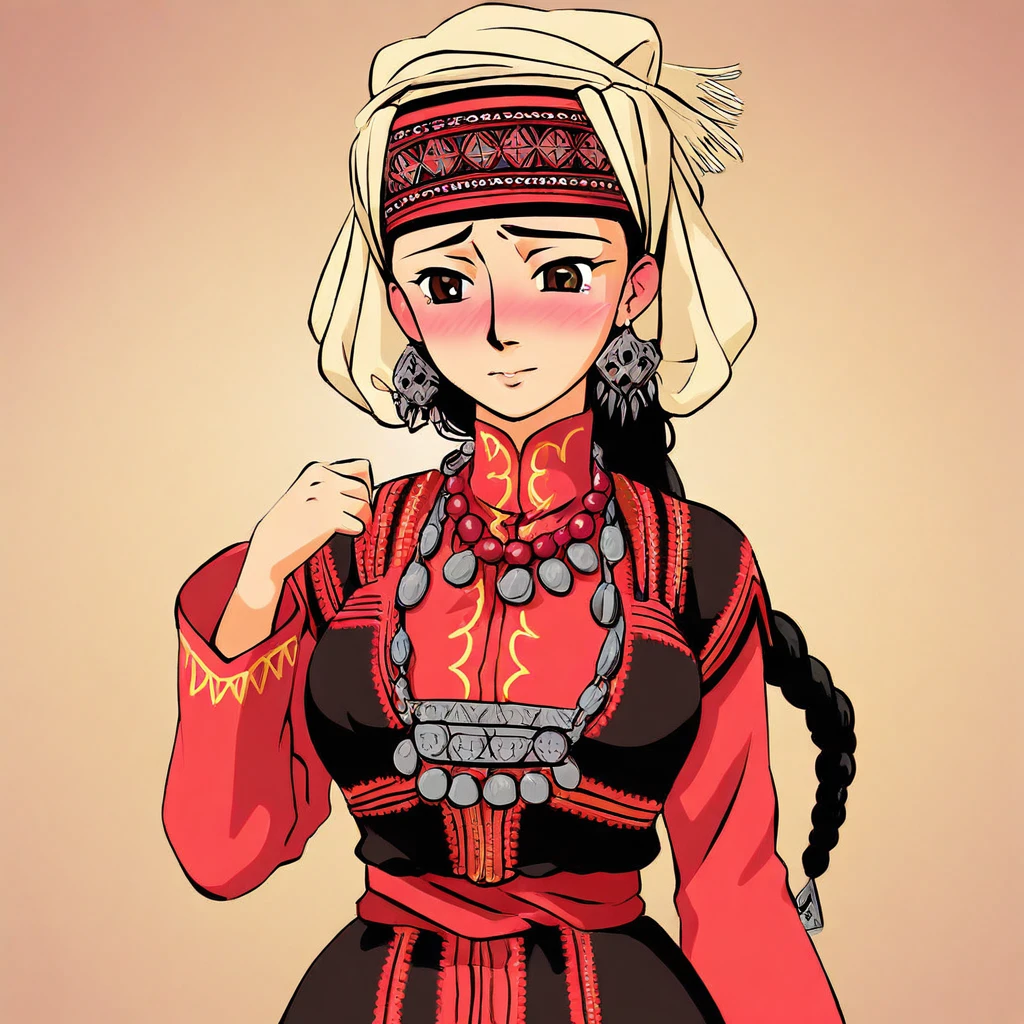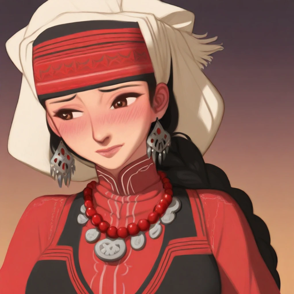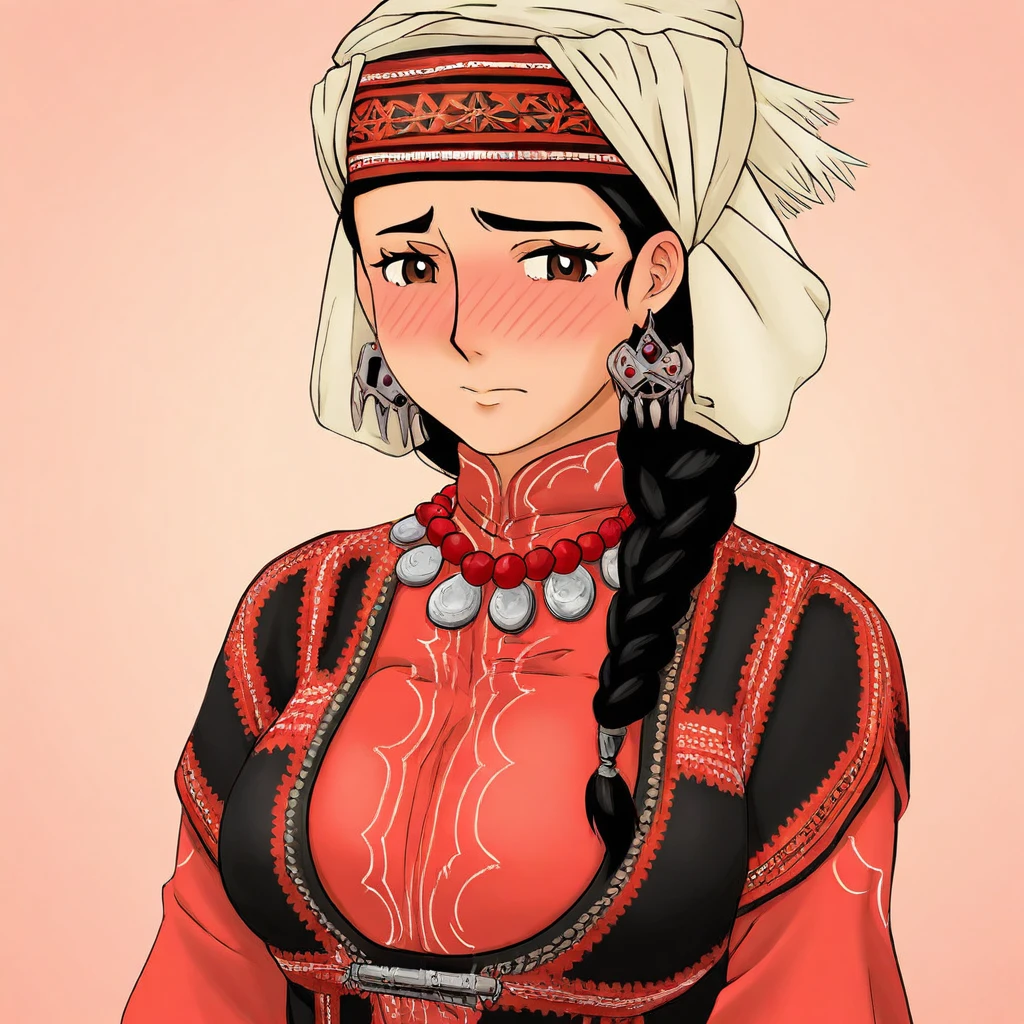 dress, bead necklace, beads, coin (ornament), headscarf, jewelry, traditional clothes, kazakh clothes,