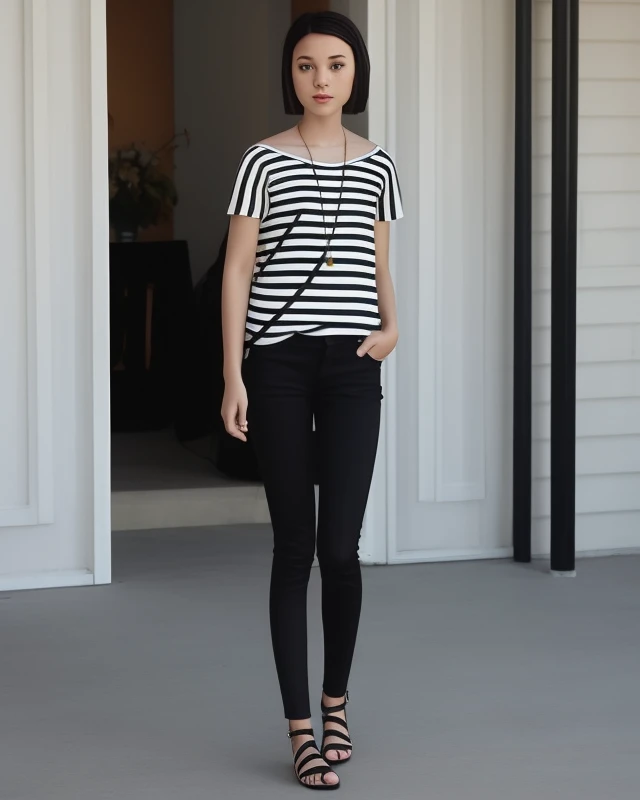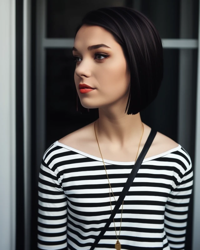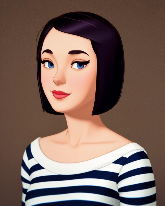 Prompt: 1girl, short hair, striped shirt, classic disney princess, classic disney animation. Seed: 2662942411