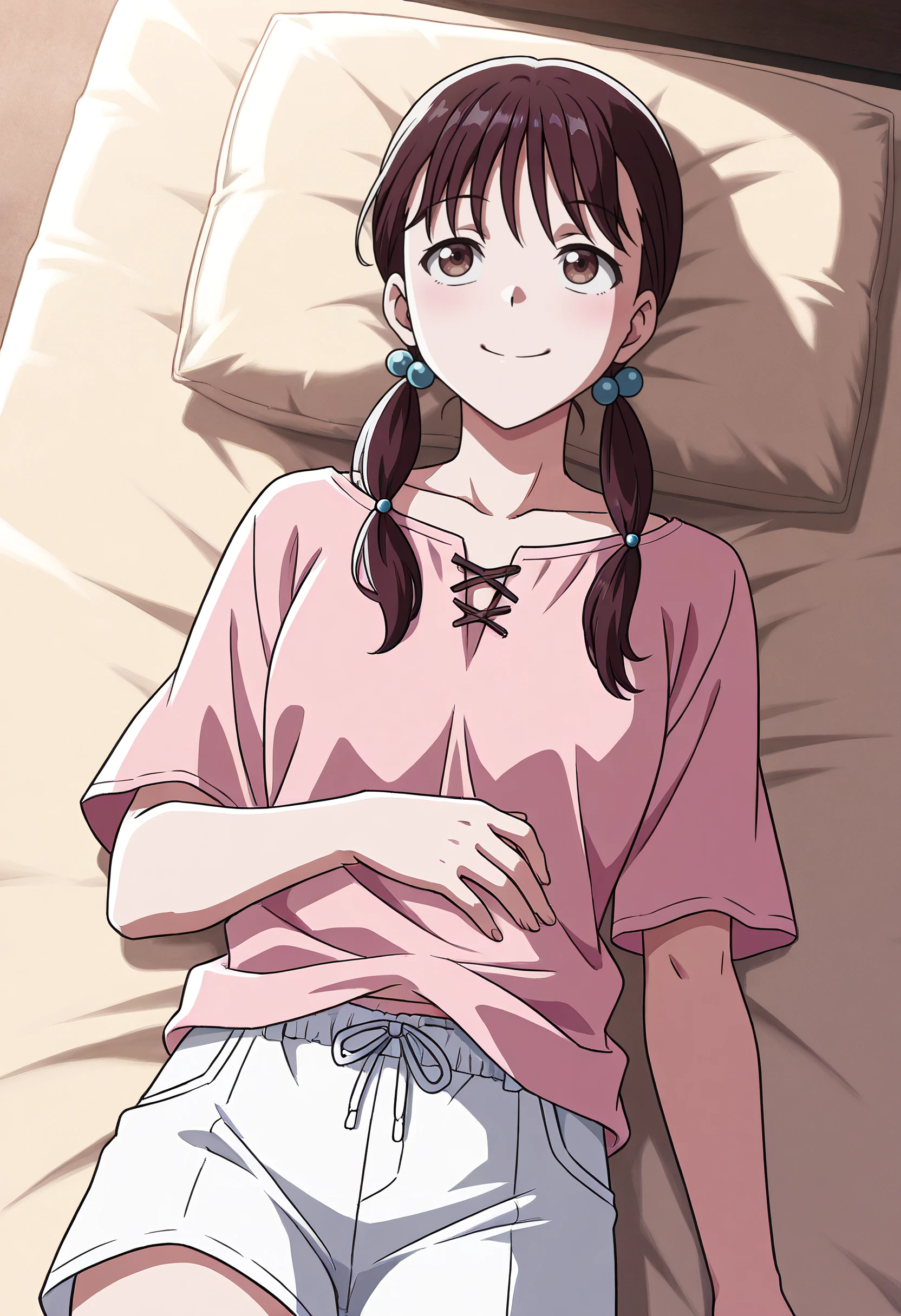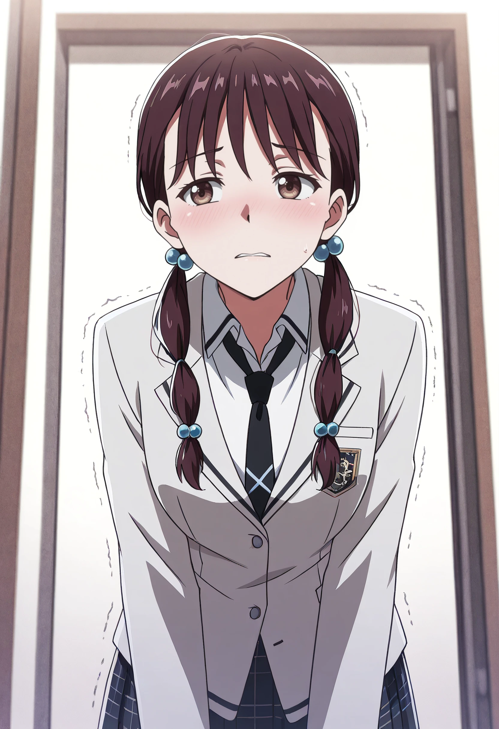 FFrKanou, long hair, brown eyes, twintails, bangs, hair bobbles, low twintails, hair over shoulder, brown hair,