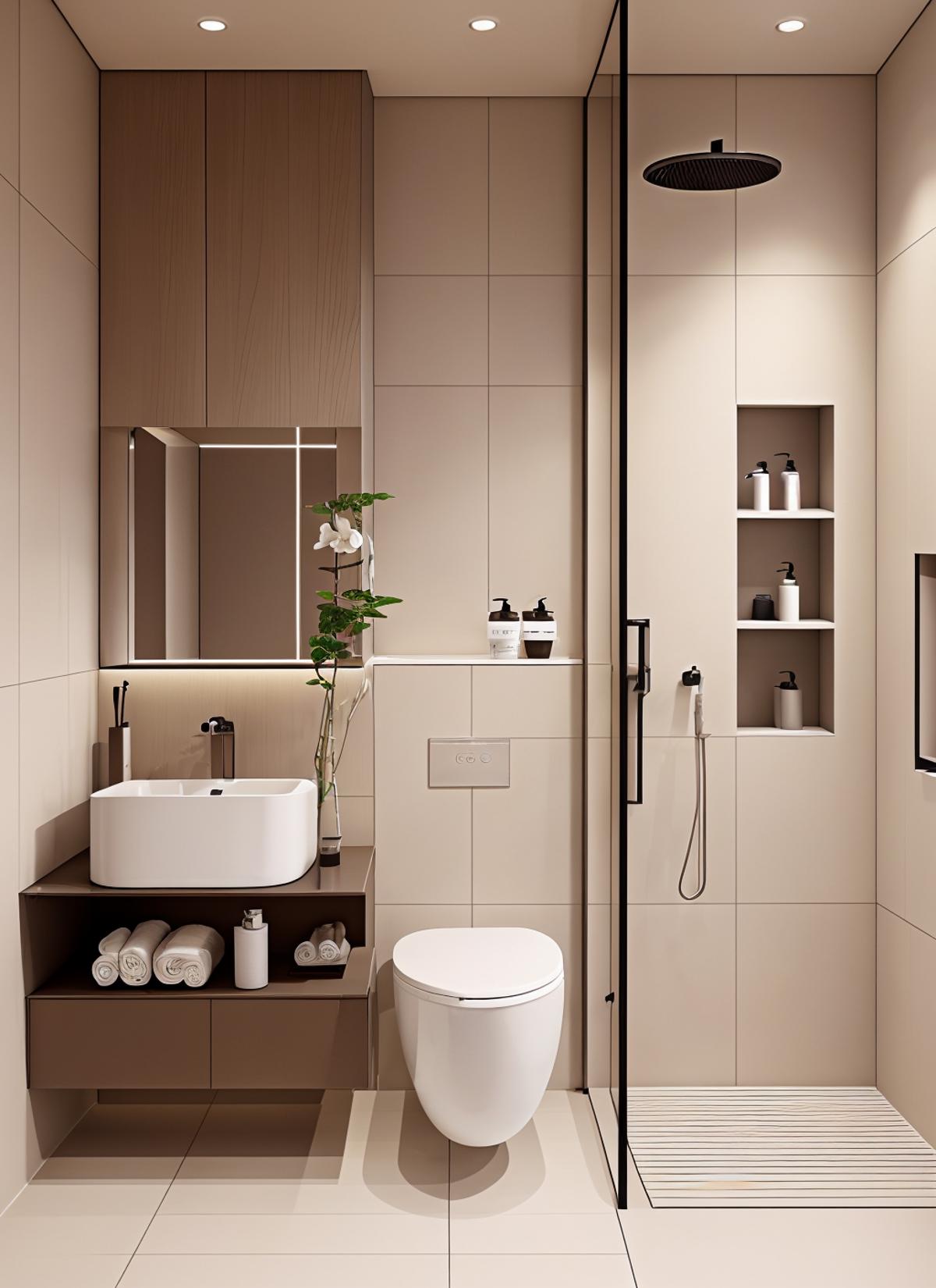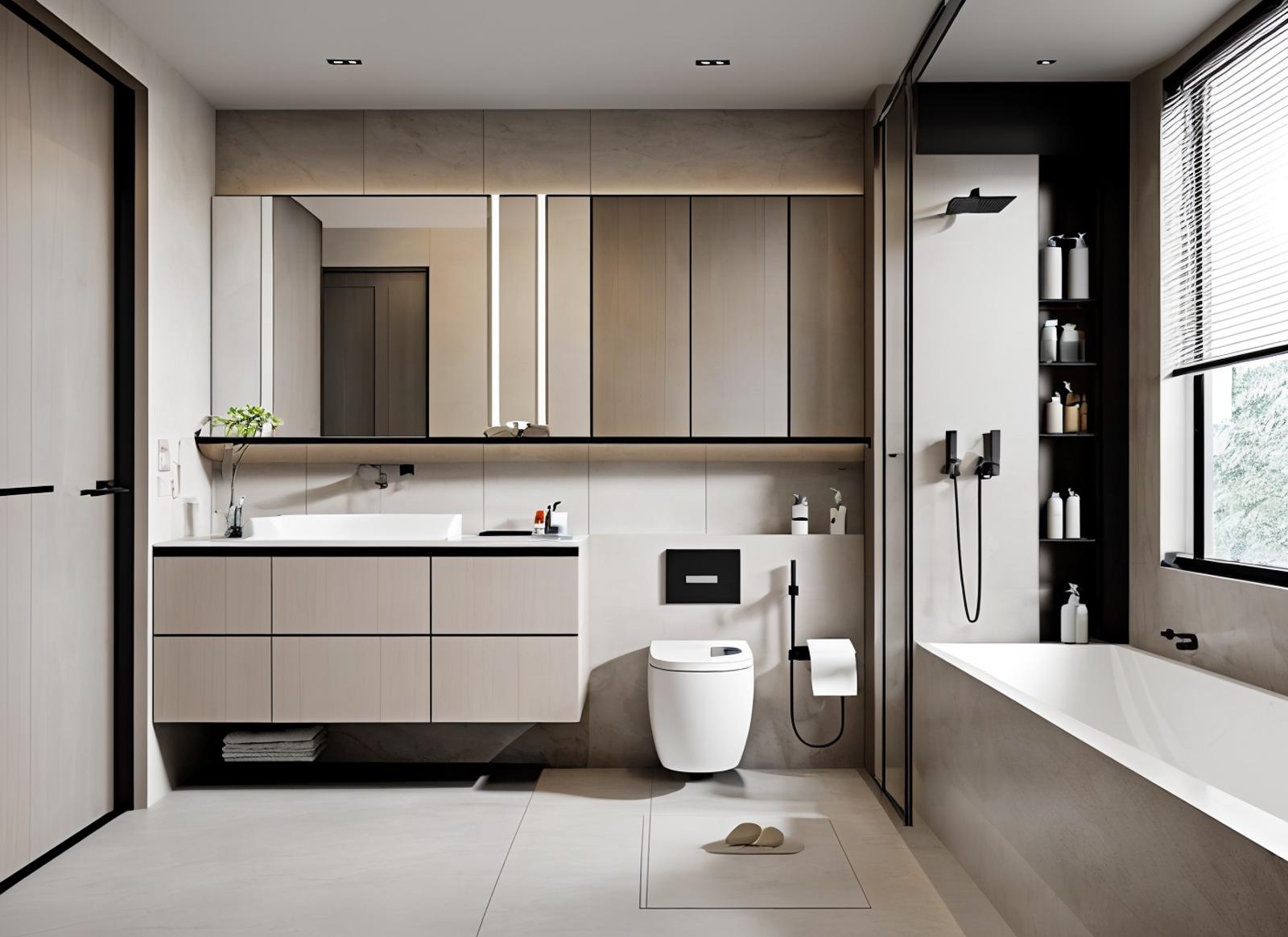 现代简约卫生间,触发词:interiordesign,bathroom,