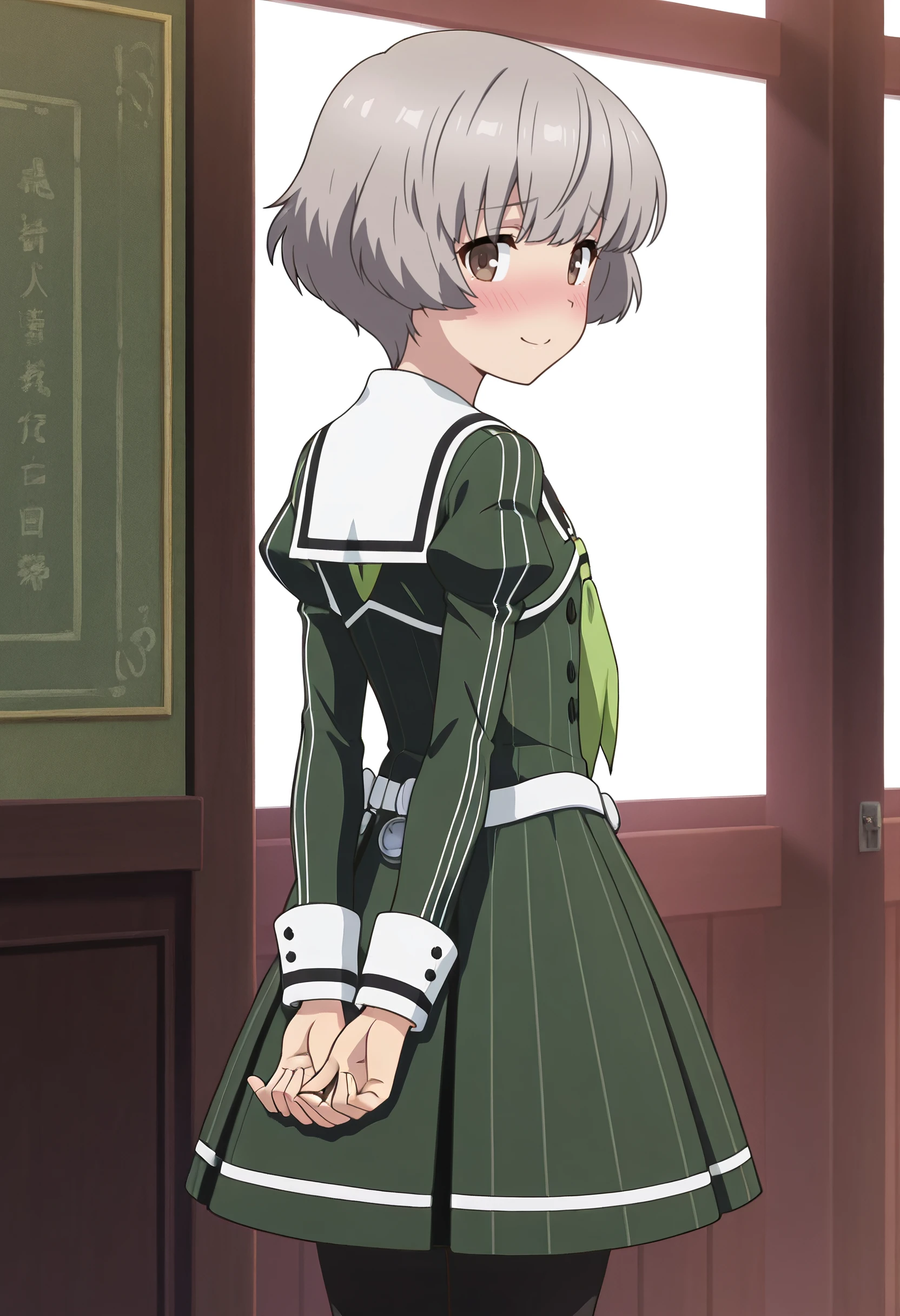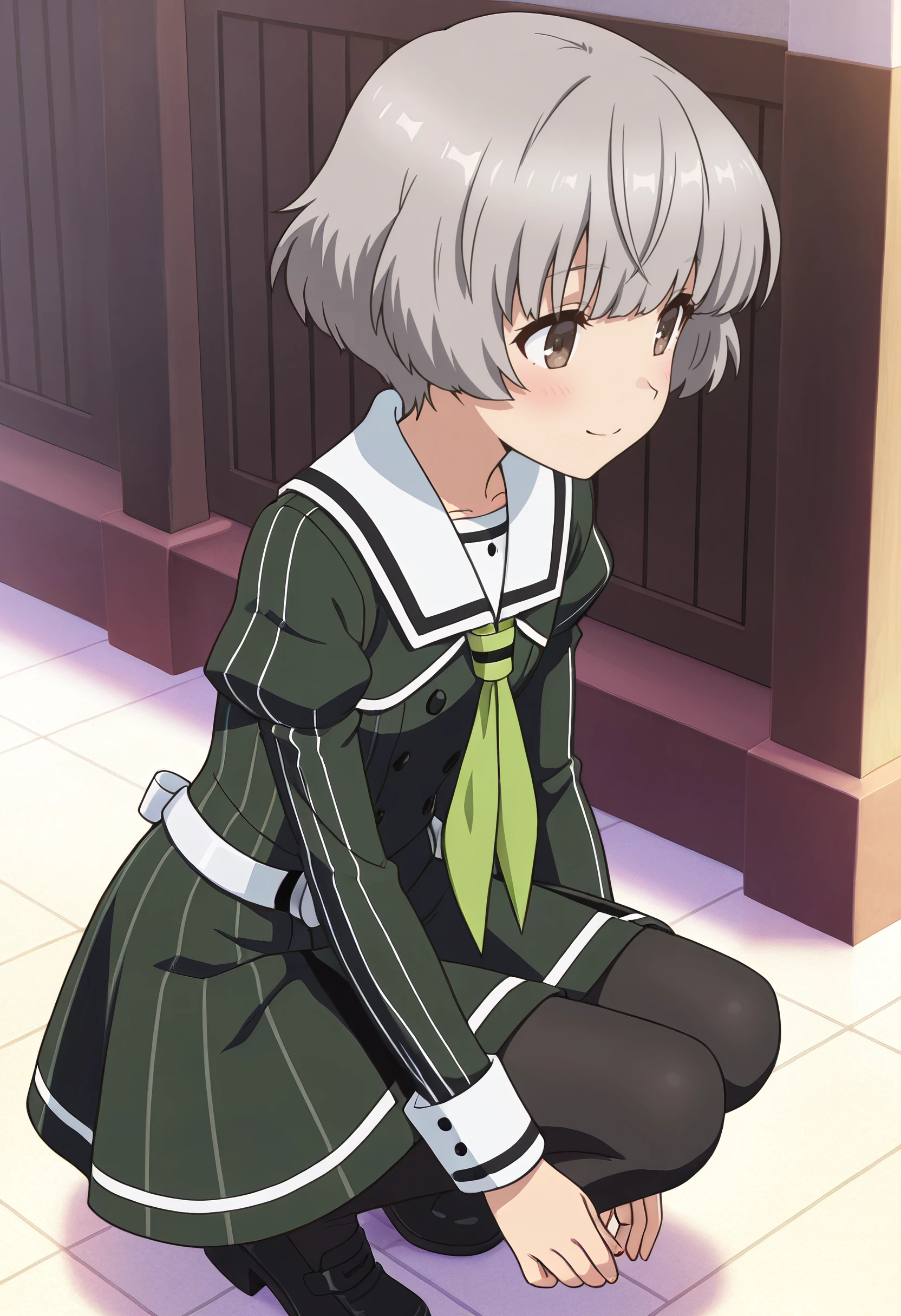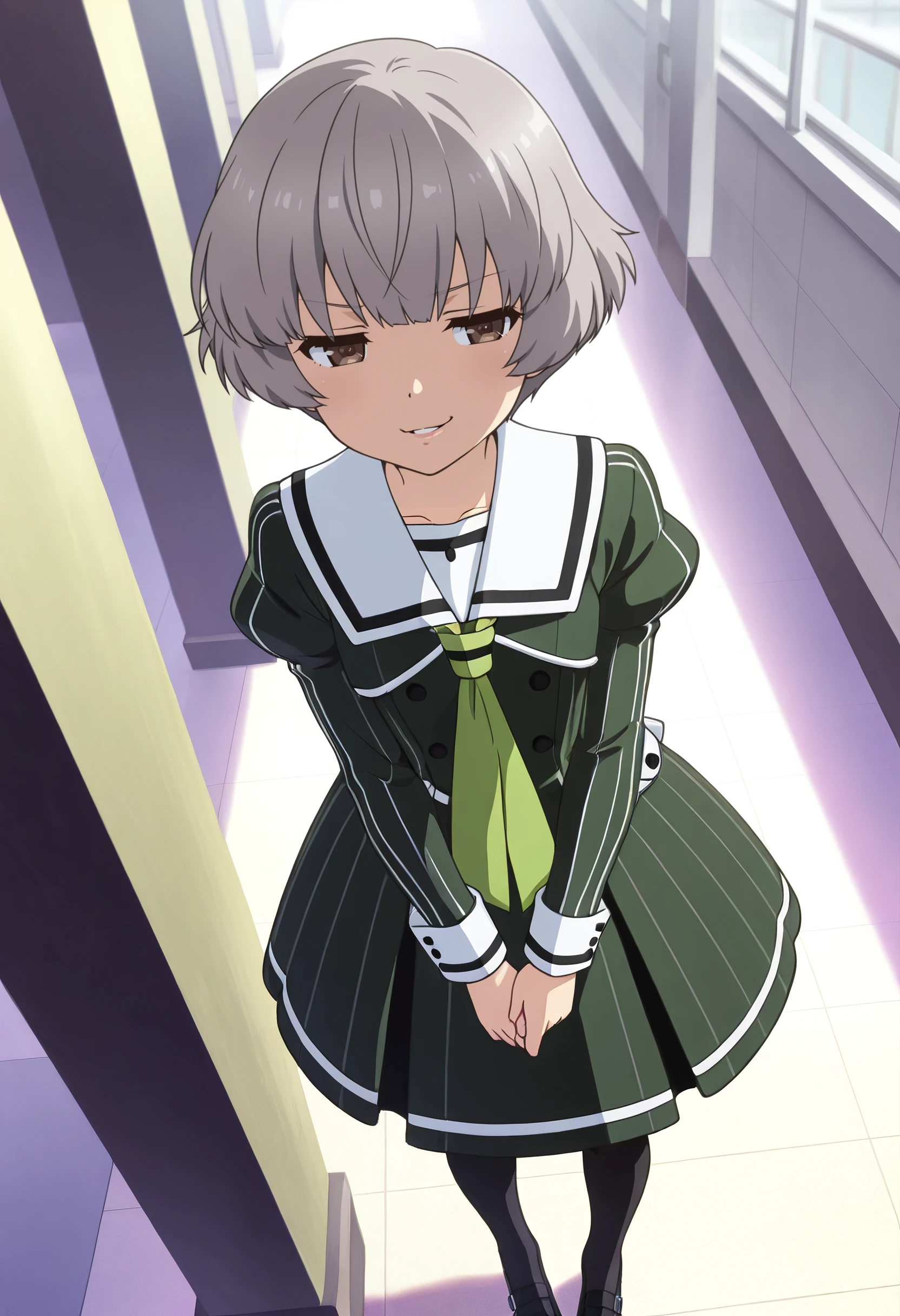 TNMSanae, grey hair, short hair, brown eyes,