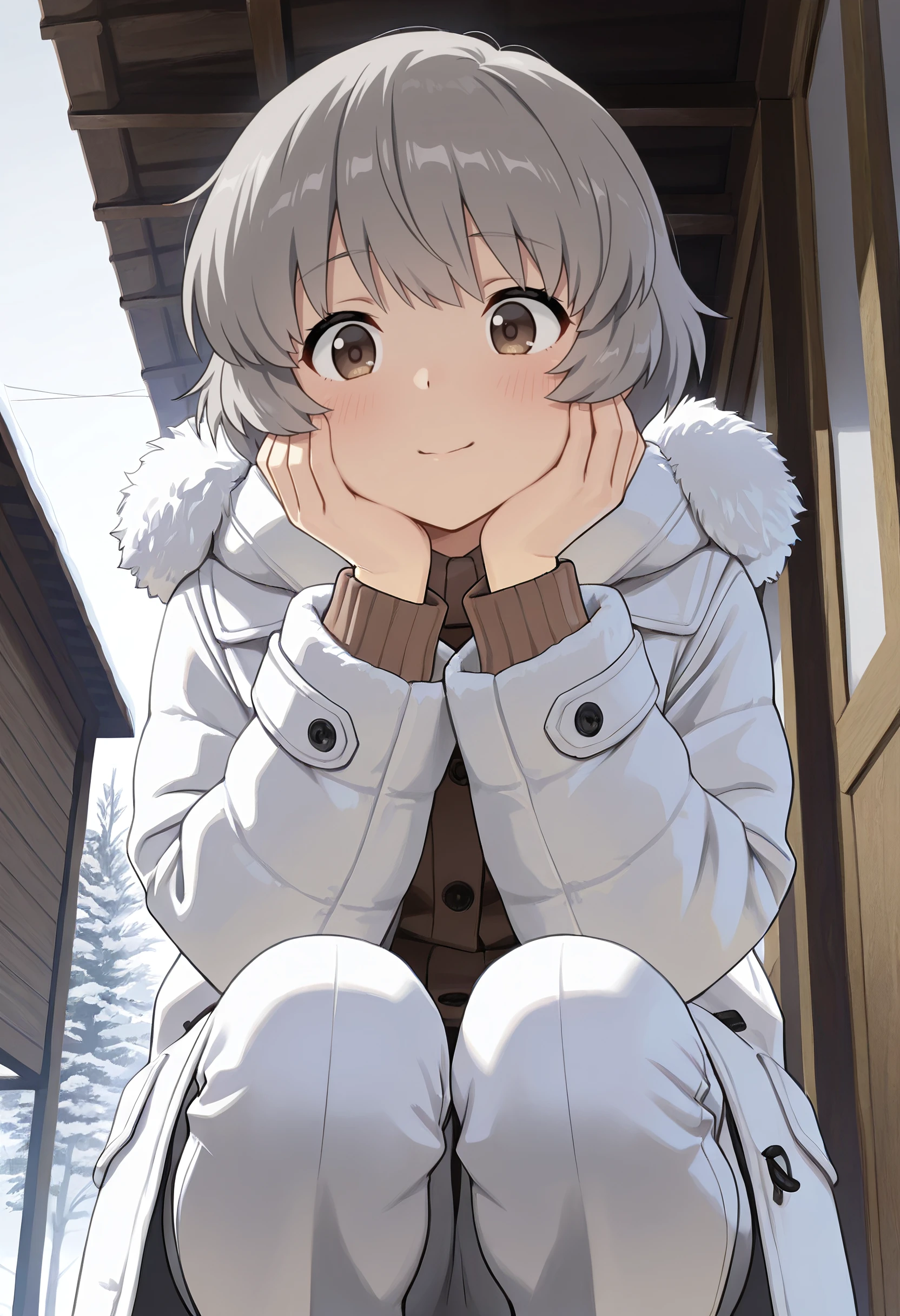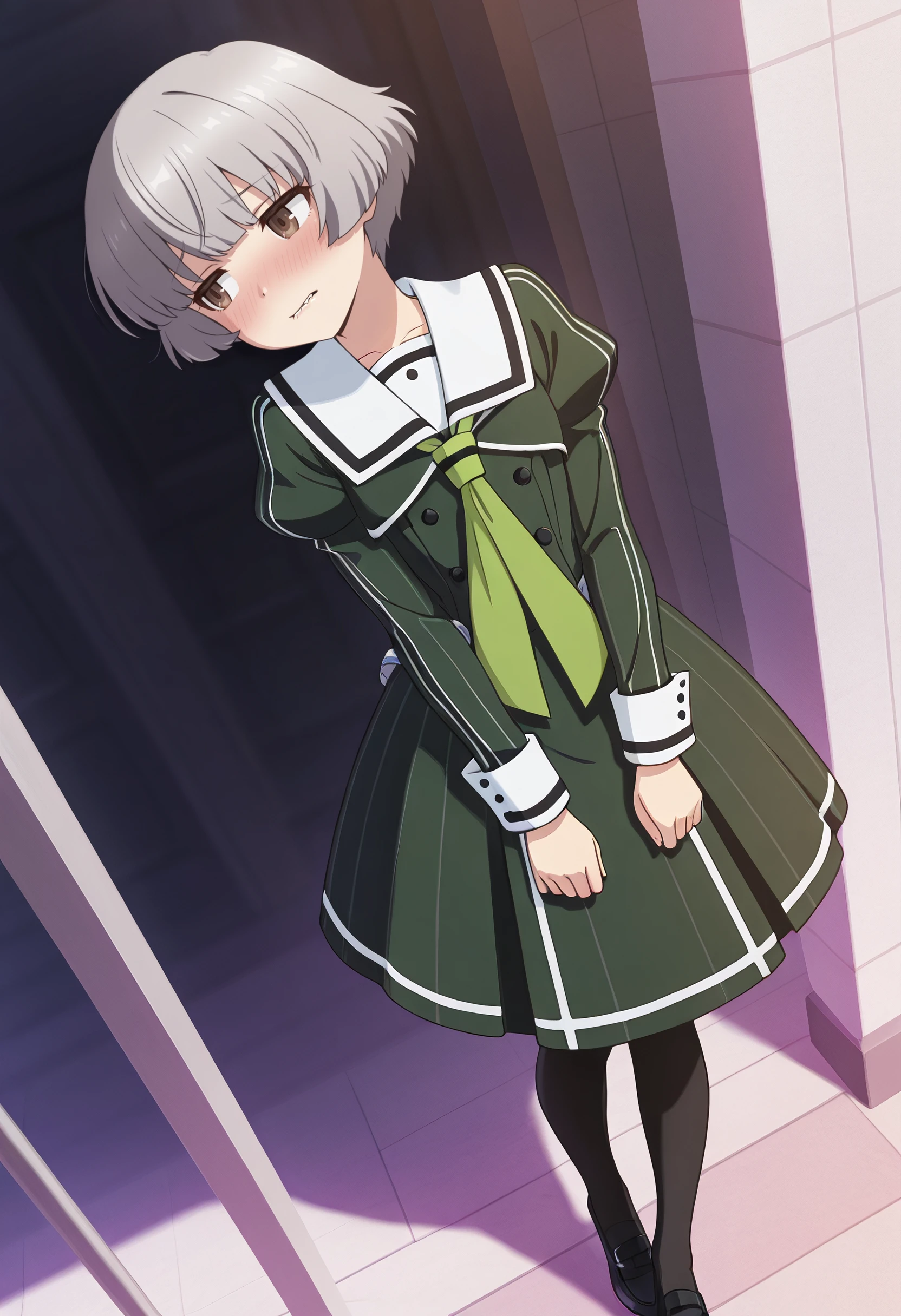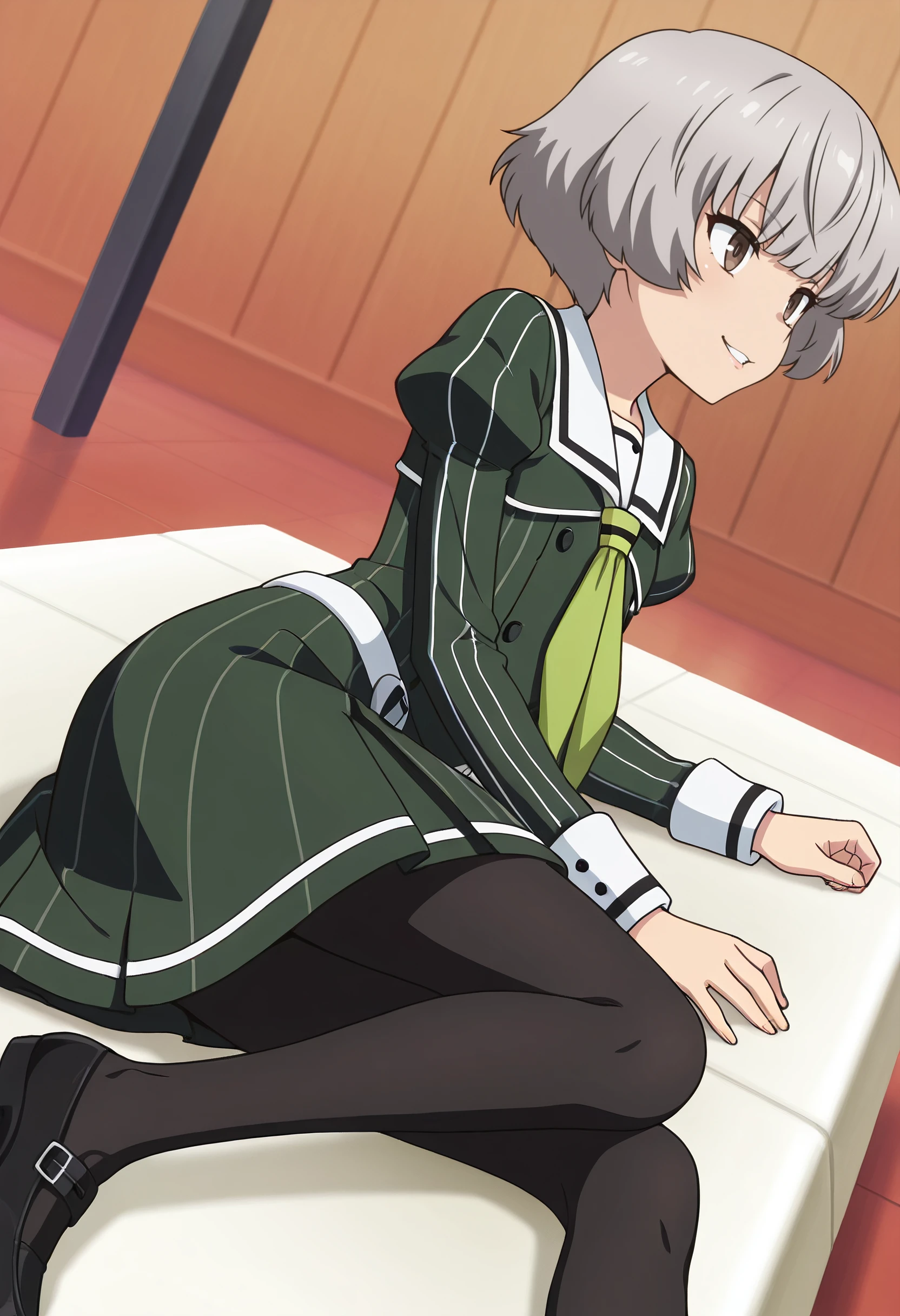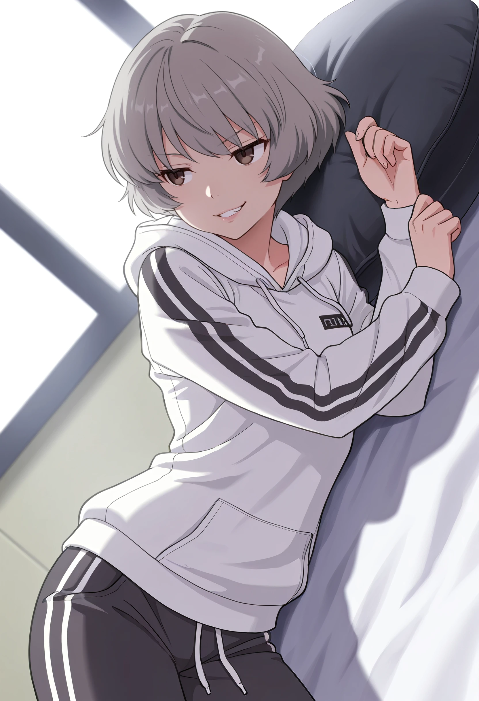 TNMSanae, grey hair, short hair, brown eyes,