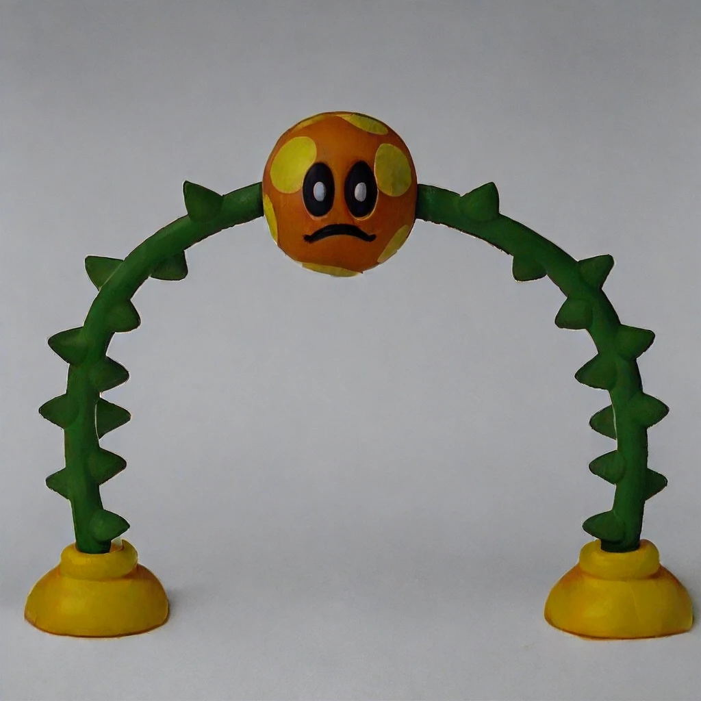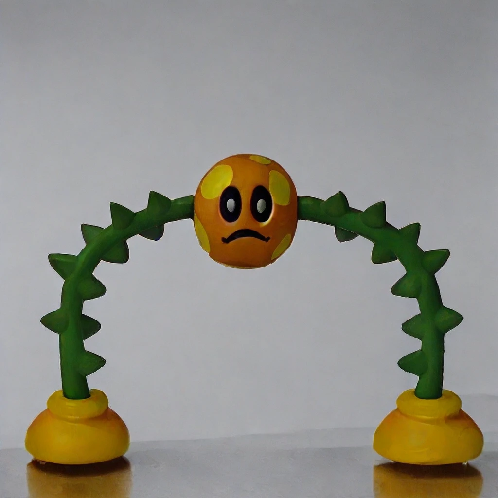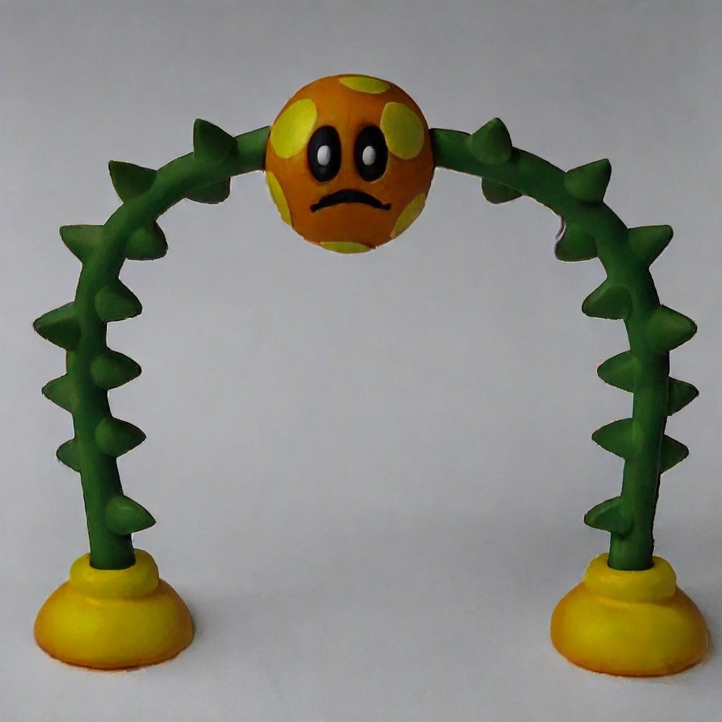 round eyes, yellow spots, vines, black eyes, solo, spiky vines, orange body, round body, yellow plunger, no humans, white pupils