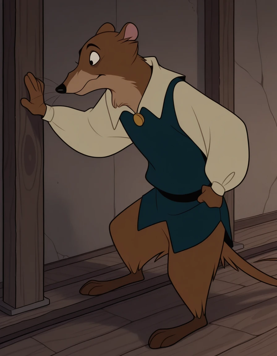 Justin from Secret of NIMHTrigger words: just1n, mouse, brown fur, black eyes, Main Outfit: white shirt, blue vest,