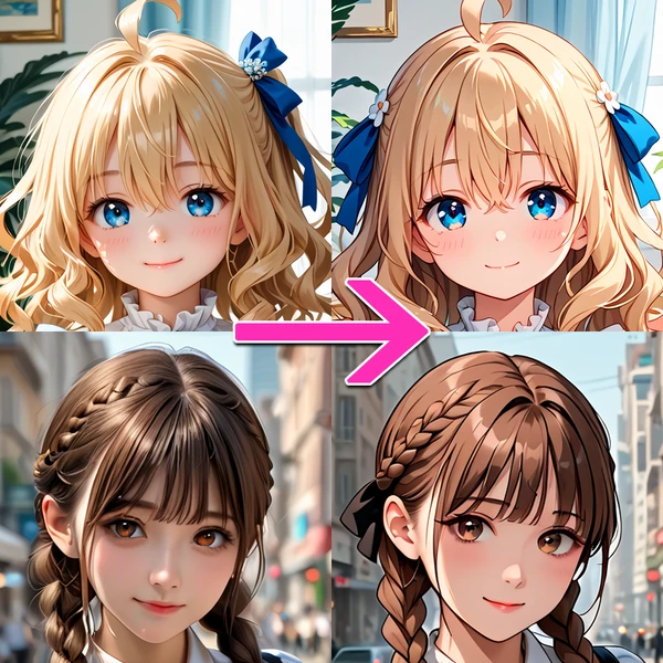 2.5Dセミリアル系モデルの出力を、絵画・アニメ寄り(2D)な見た目に変換できます。