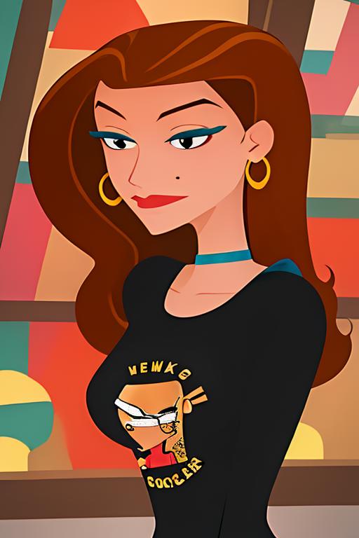 Yummy Mummy from the show 6Teen. I generally use it in a range of 0.5-0.7, more than that will generally get a bit fuzzy. You may need to play with the strength a bit depending on the checkpoint used. It has a lot of difficulty, in my experience, keeping the leopard print isolated to the pants.