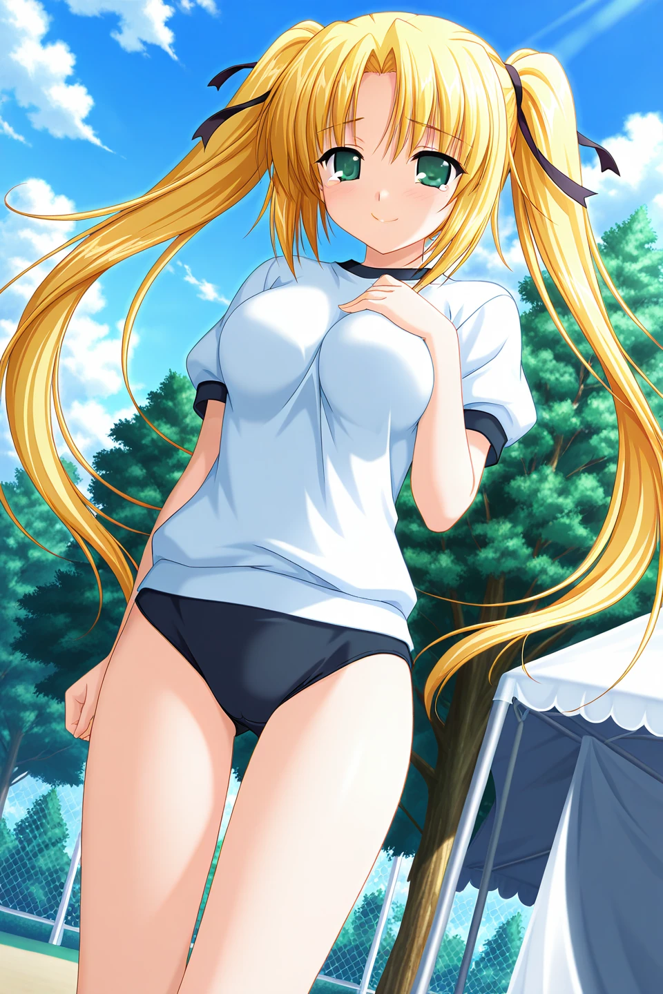 gym uniform,gym shirt,white shirt,puffy short sleeves,blue buruma,b