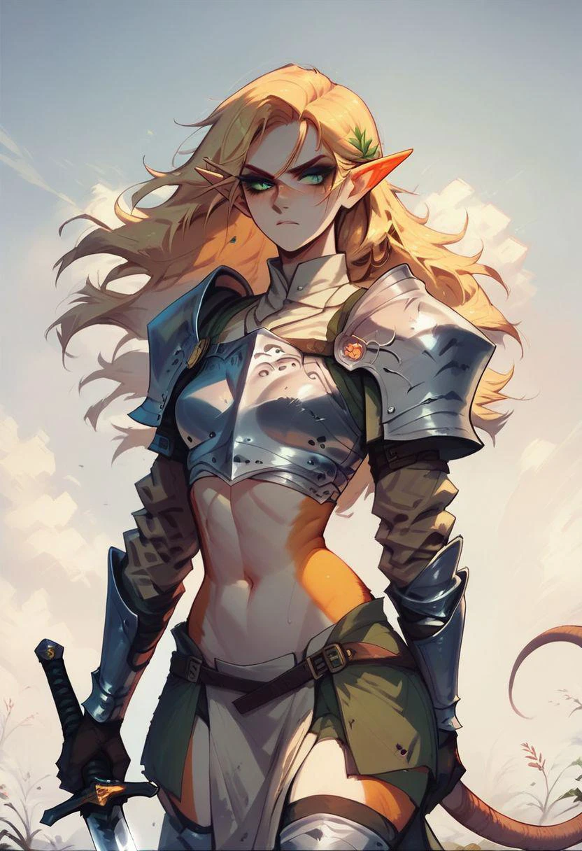 Here's my OC, Vermillia, a rat elf hybrid, and ??????? princess. Her father, the elf king, may or may not have had an affair with a rat kin woman...