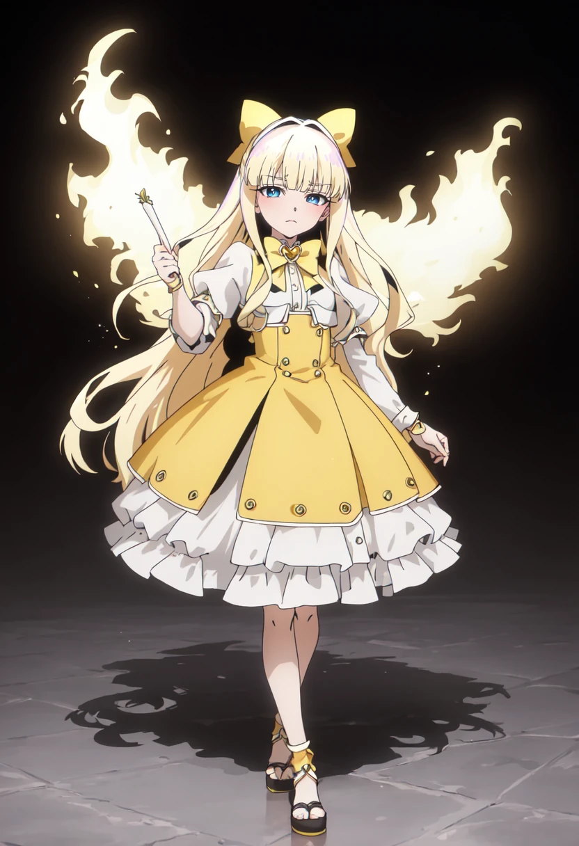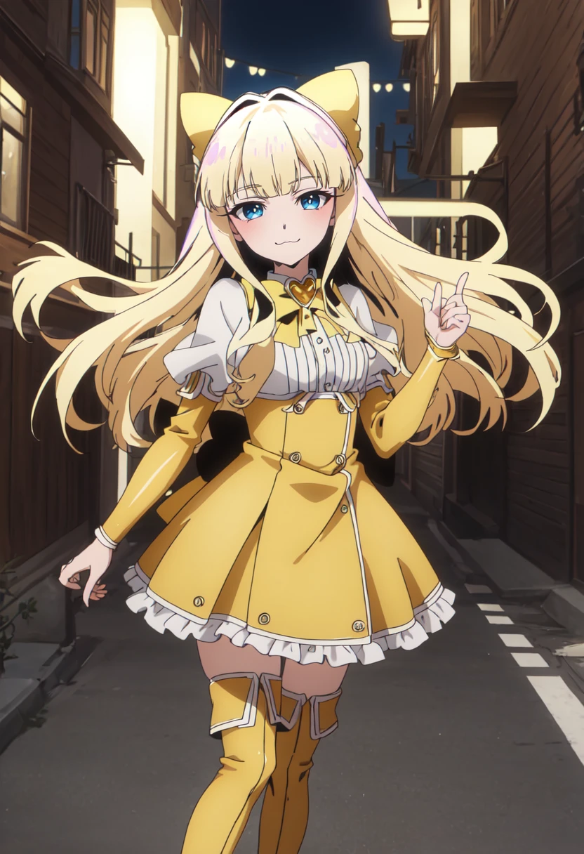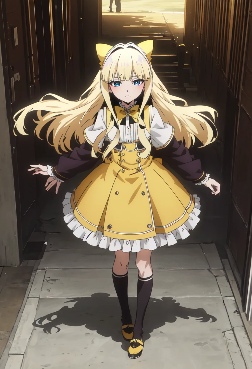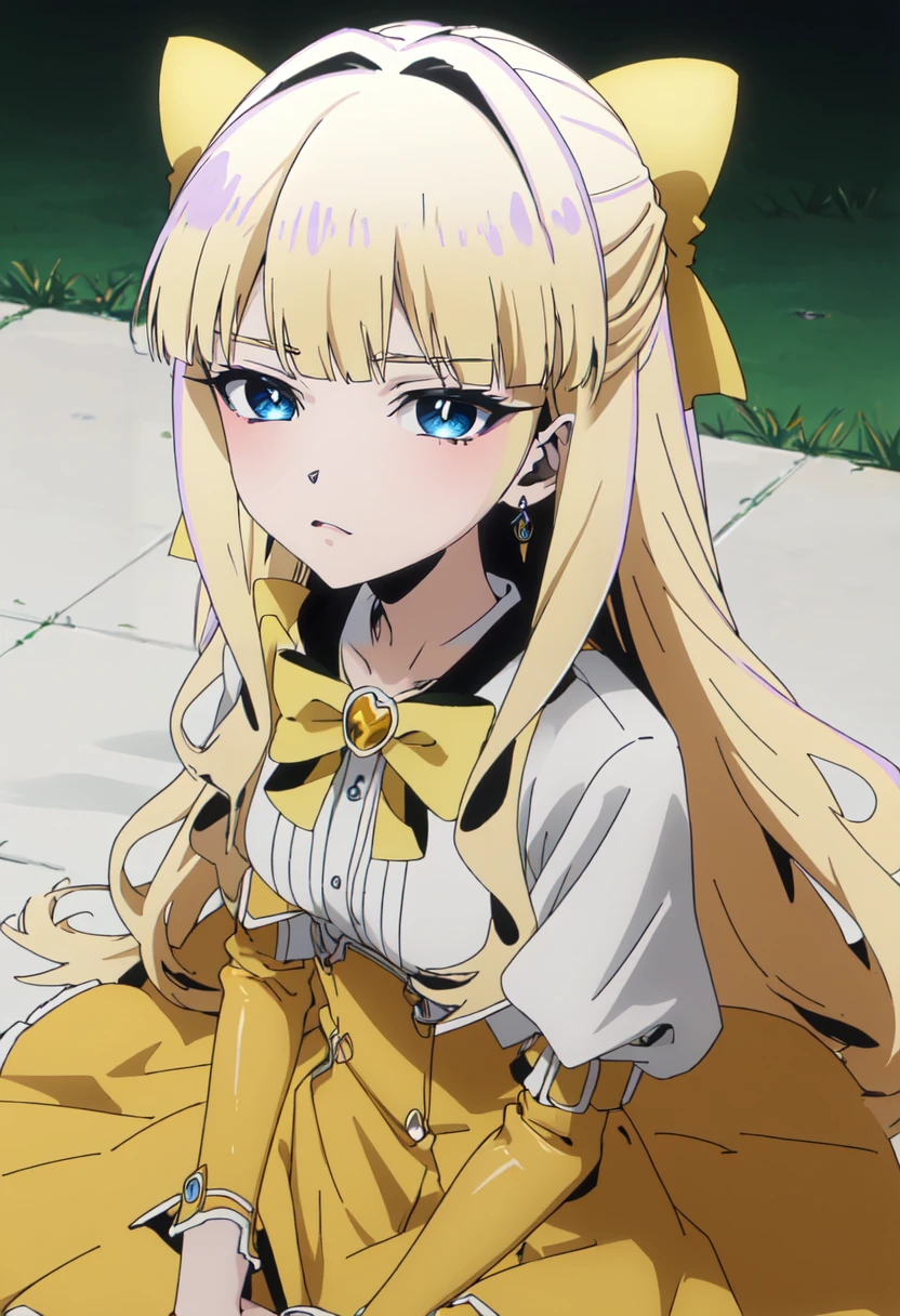 - The pruned character tags are blonde hair, long hair, bow, hair bow, blue eyes, yellow bow, blunt bangs. You can add them into prompts when core features (e.g. hair color) of character is not so stable.