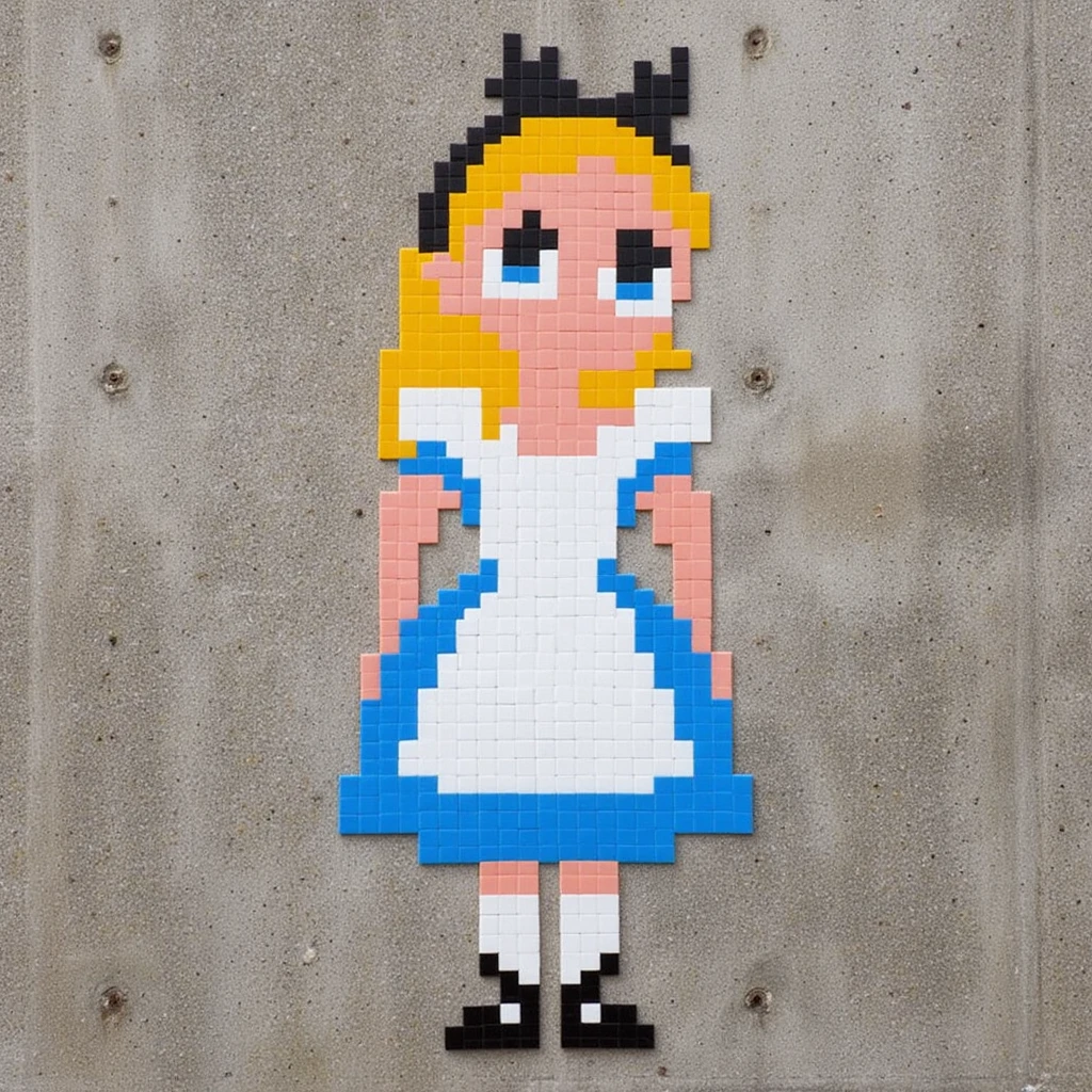 The training process for this LoRA model involved a selection of Invader's works, capturing various environmental contexts to ensure versatility. This allows the model to generate images that reflect not only the pixelated style but also the complex interplay between light, shadow, and texture that is characteristic of photorealism. Users can explore the juxtaposition of classic 8-bit aesthetics with modern urban landscapes, achieving creative compositions that are both nostalgic and contemporary.