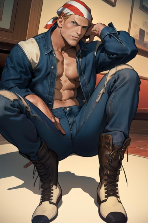 Clothes: (bandana), (jacket), (pants), (belt), (boots), (red staff), (holding staff) to edit, include, remove clothes and staff.