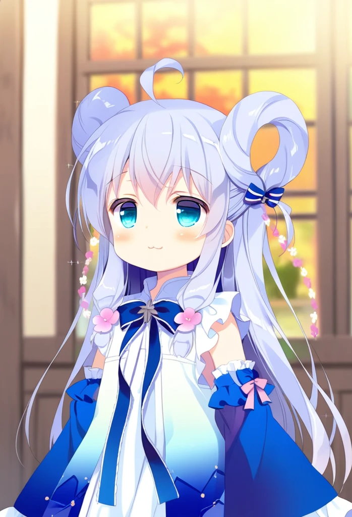 tigger words:sutera_(flower_knight_girl),hair ornament,blue hair,ahoge,...