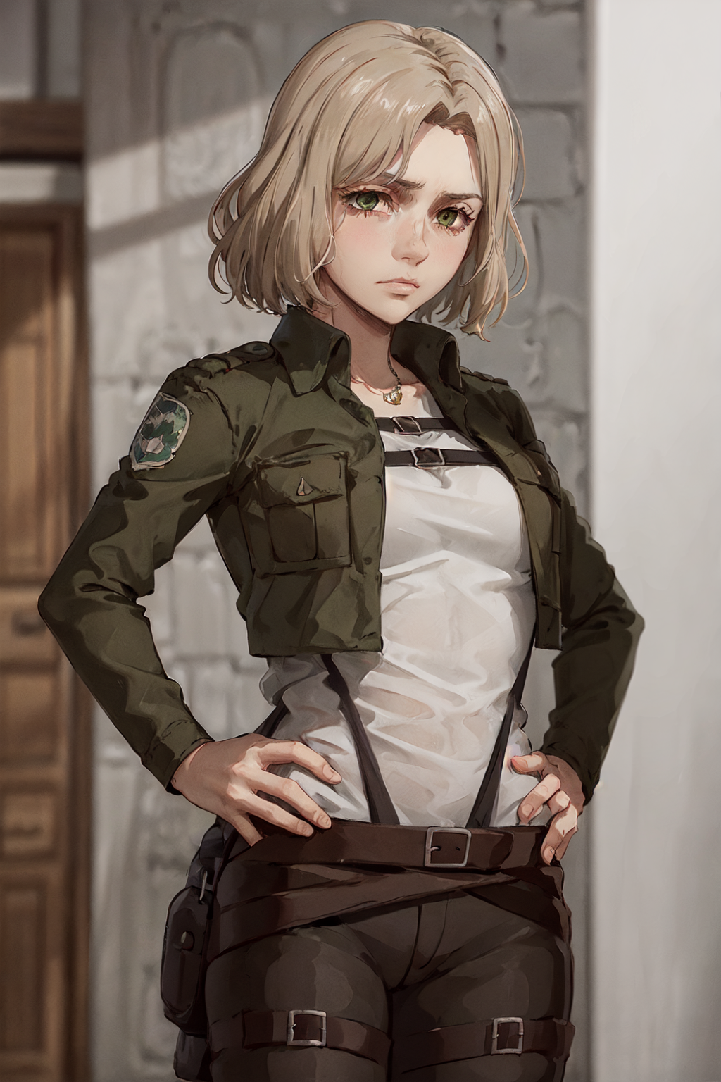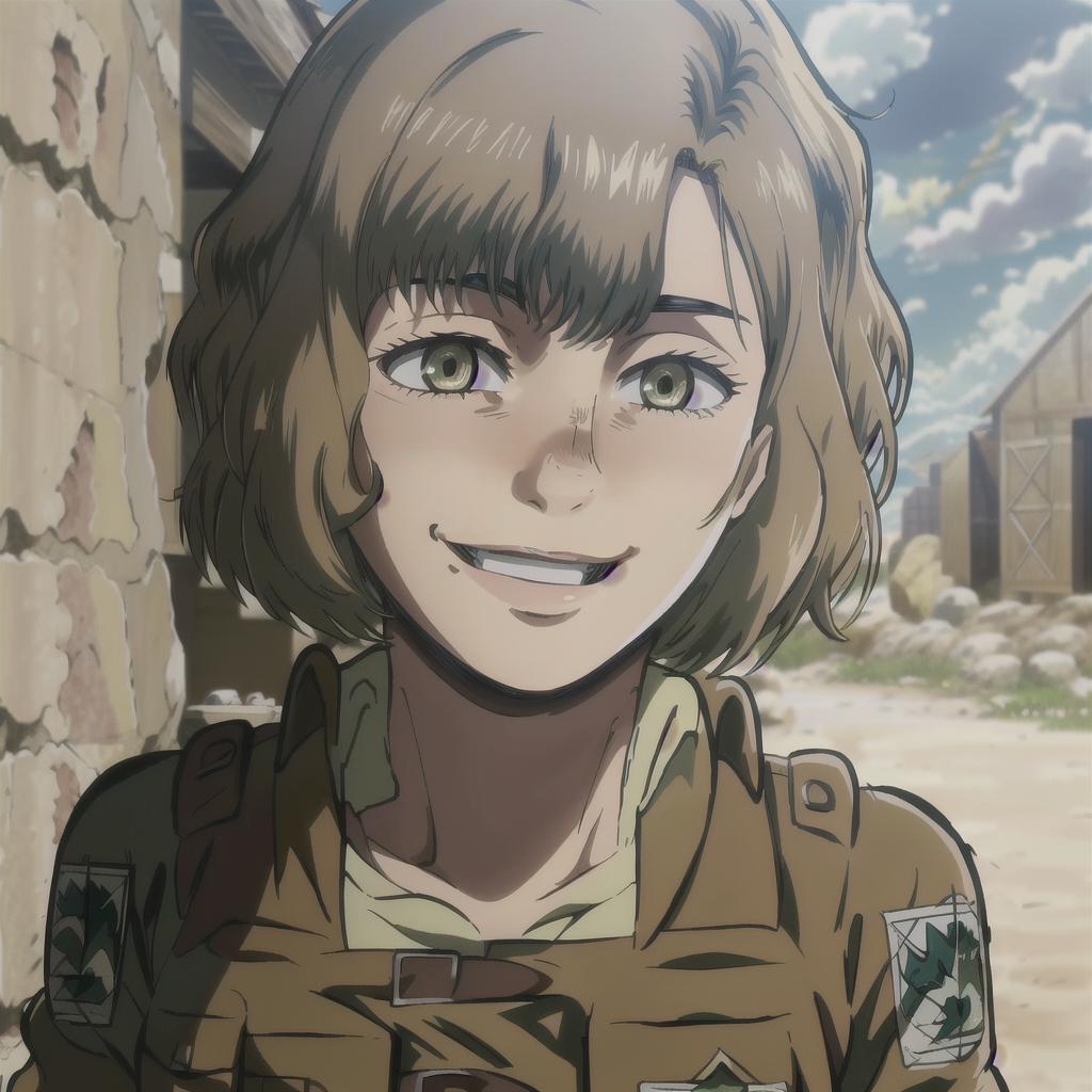 Okay, I think I'm okay with this one. I worked with a limited dataset from Gelbooru, so I went over to the Attack on Titan wiki to find that they had a handful of screencaps of Hitch Dreyse. The initial dataset contained 13 images, so I grabbed 8 more.