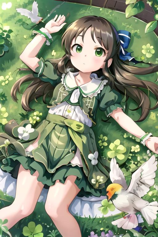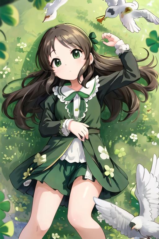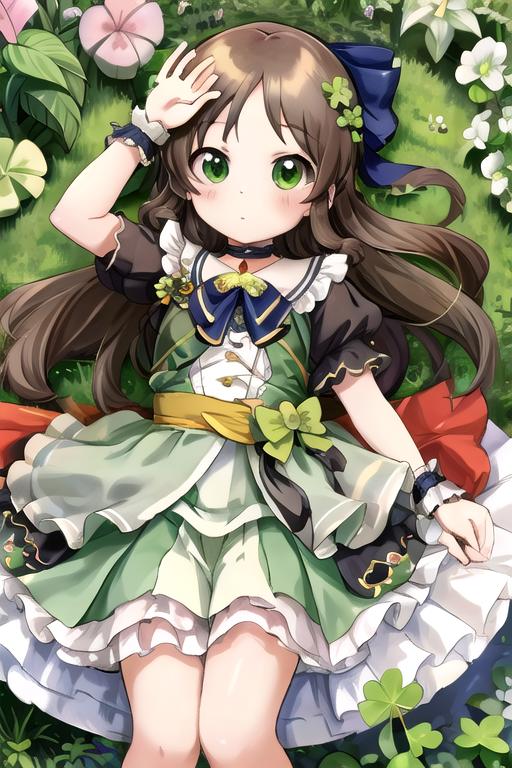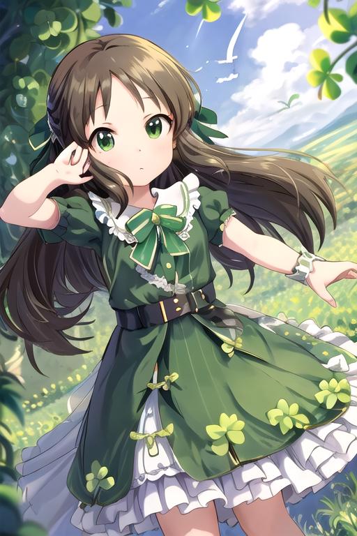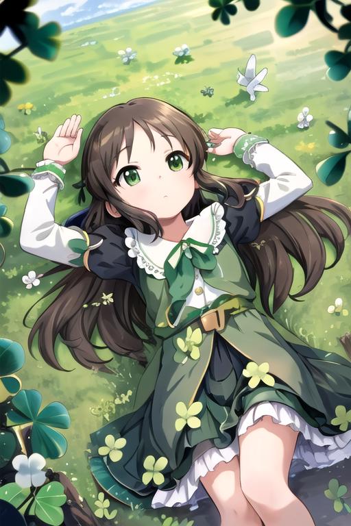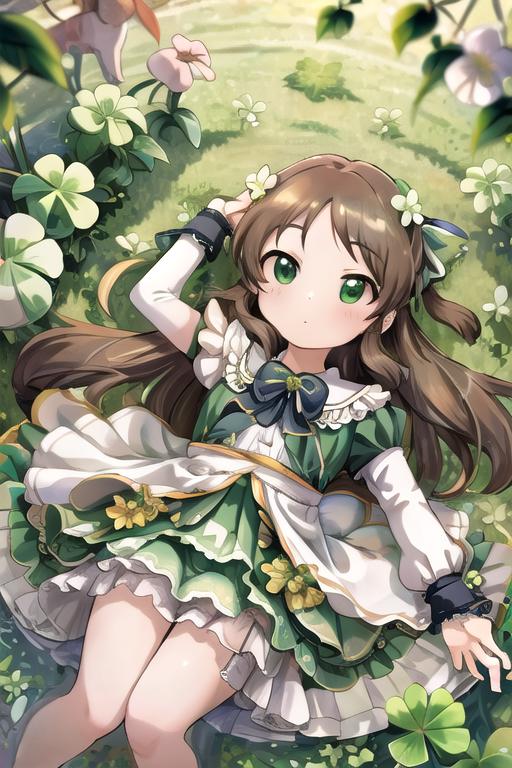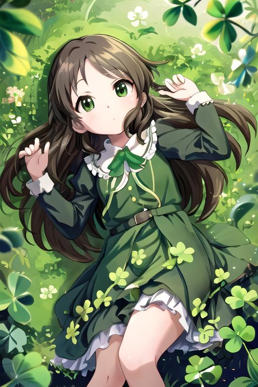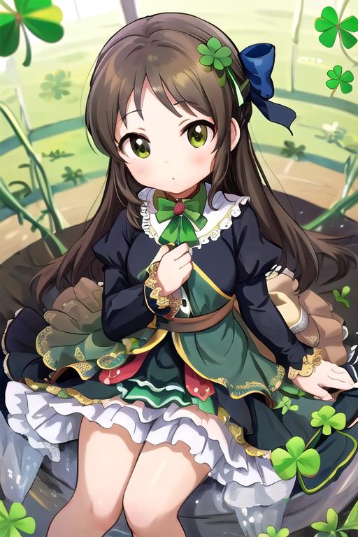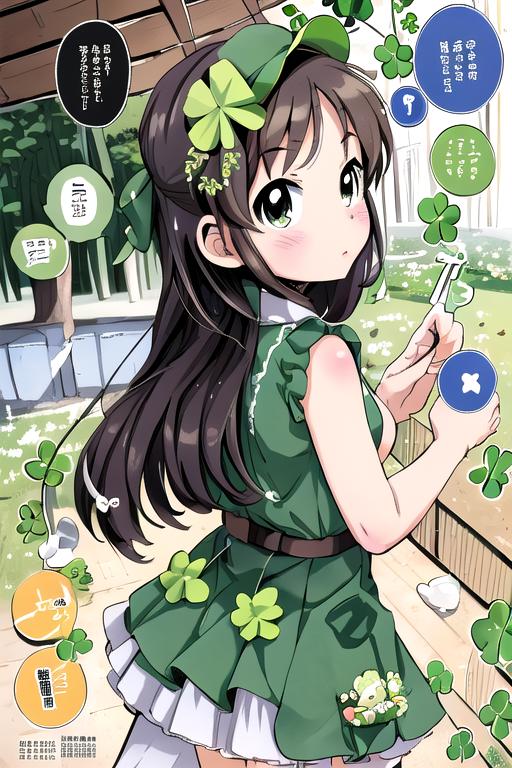 Specified necessary of day, field, sky and other word then increase possiblity for clover on the ground(if not specified, one background wallpaper) and also can get more quarity "four-leaf clover, clover hair ornament, clover print" maybe.