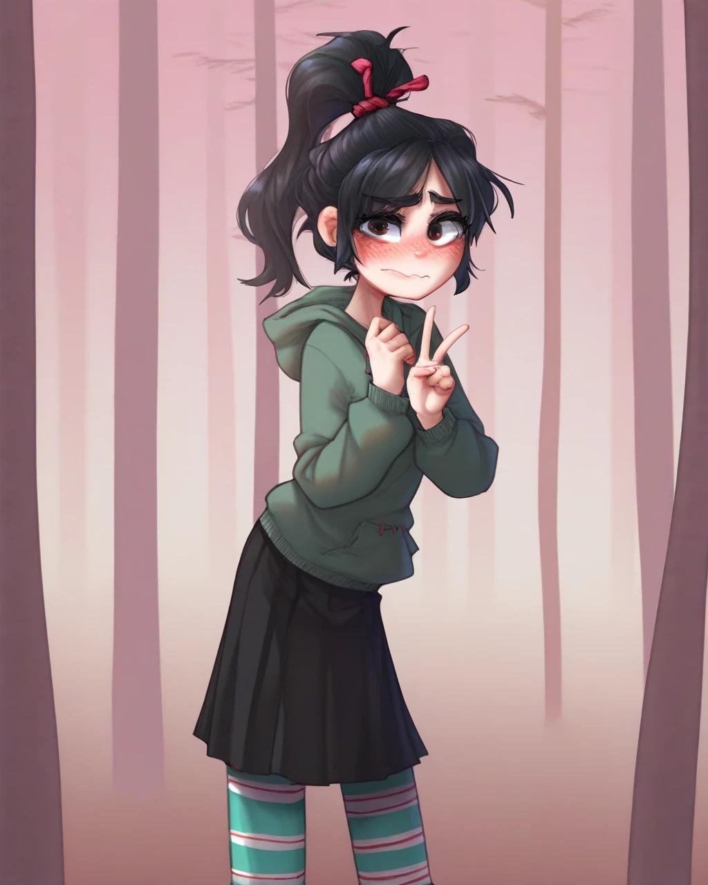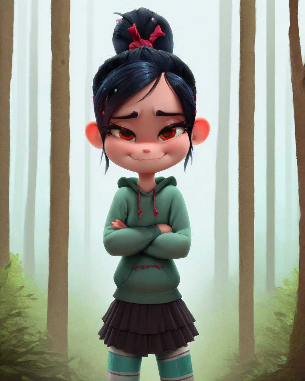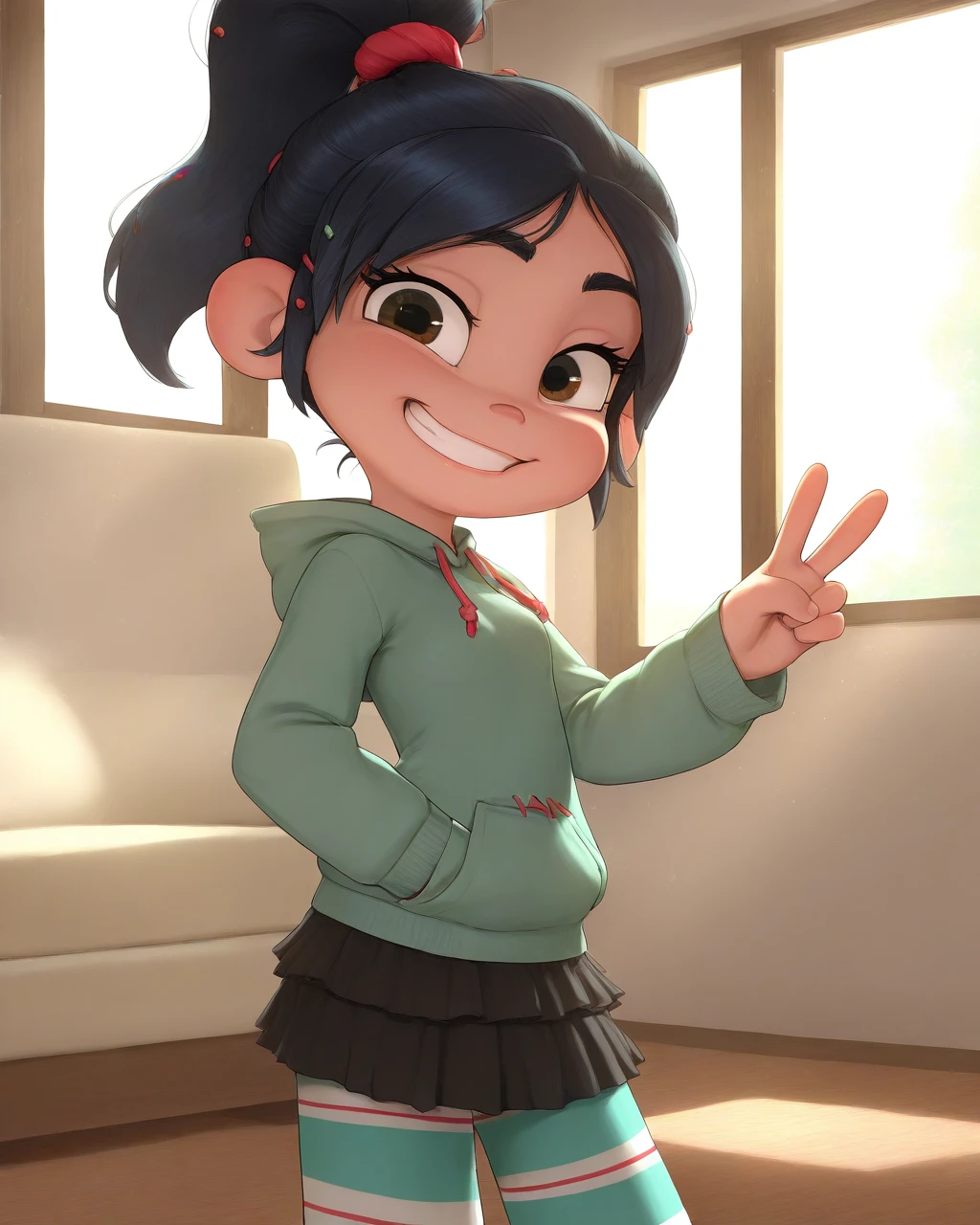 Use vanellope to summon her, use these default outfit tags depending on the composition tag you choose.