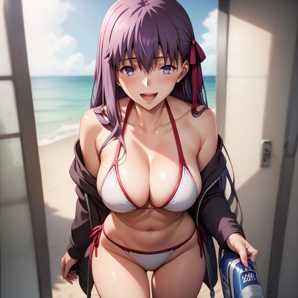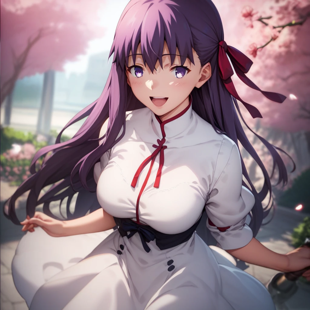 1girl, solo, fate_sakura, purple hair, purple eyes, long hair,