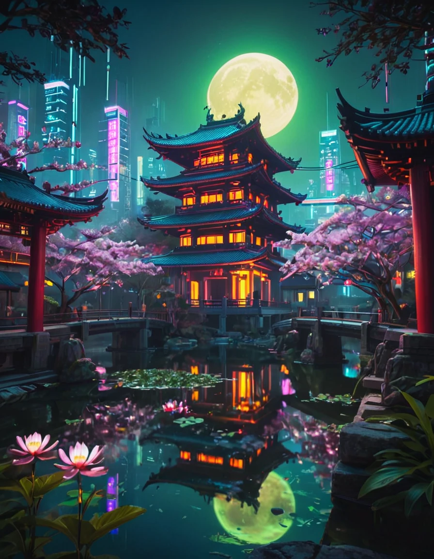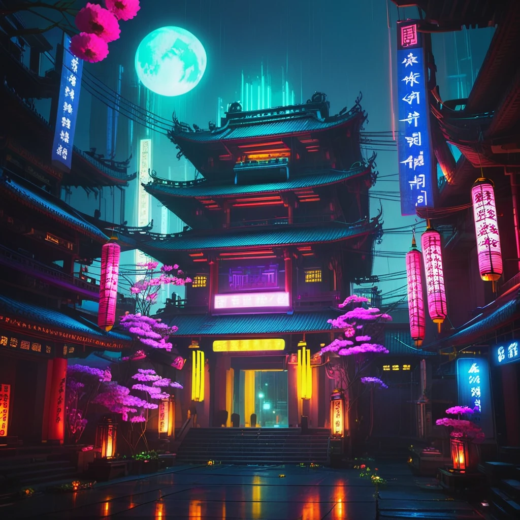 Create cyberpunk (and normal) asian temples. Anime and photo.