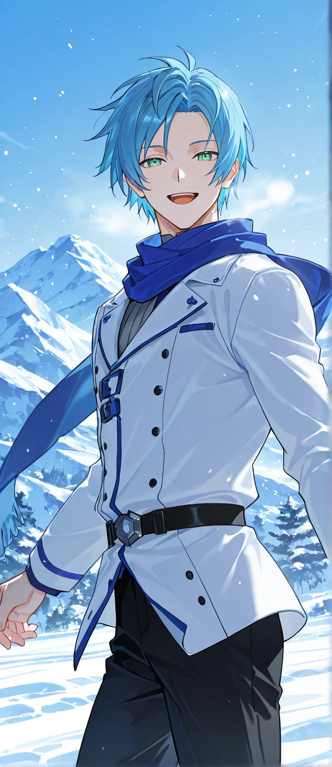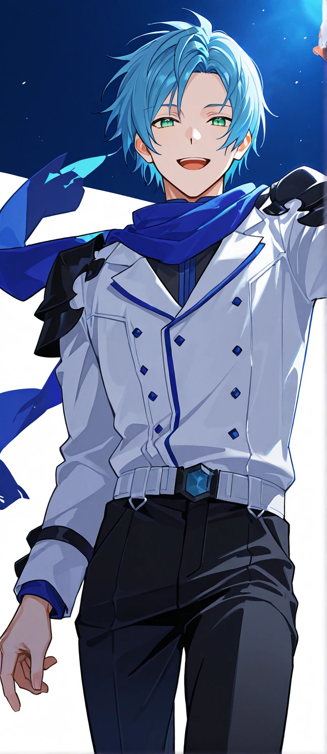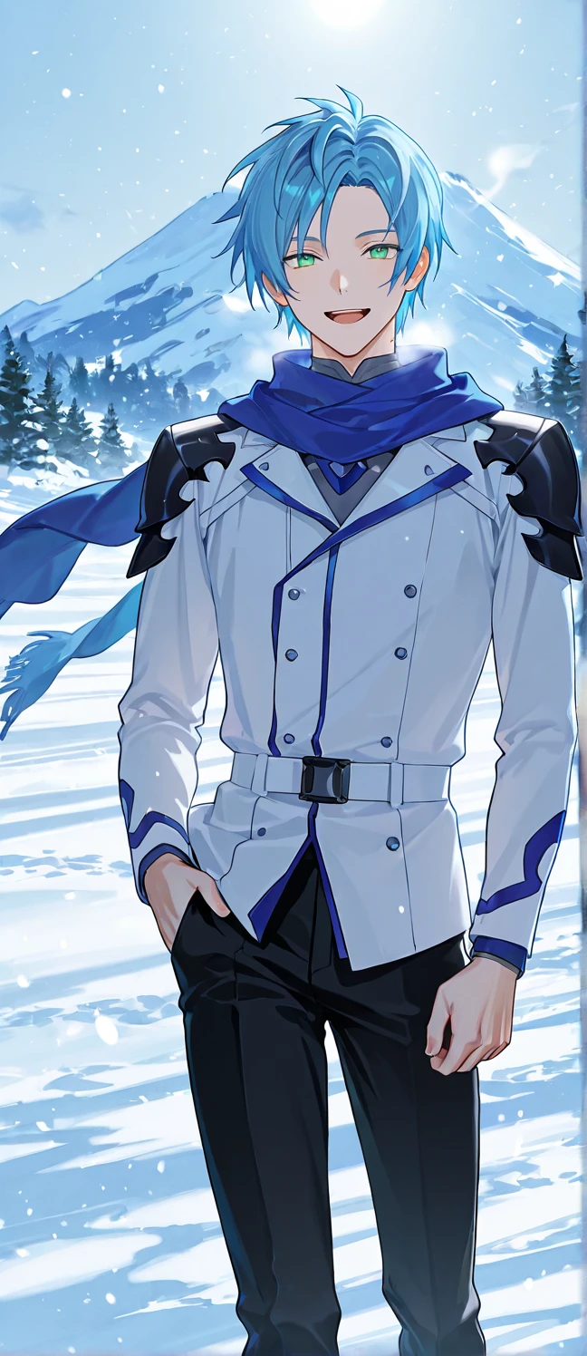 regis altare,blue hair,green eyes,blue eyes,virtual youtuber