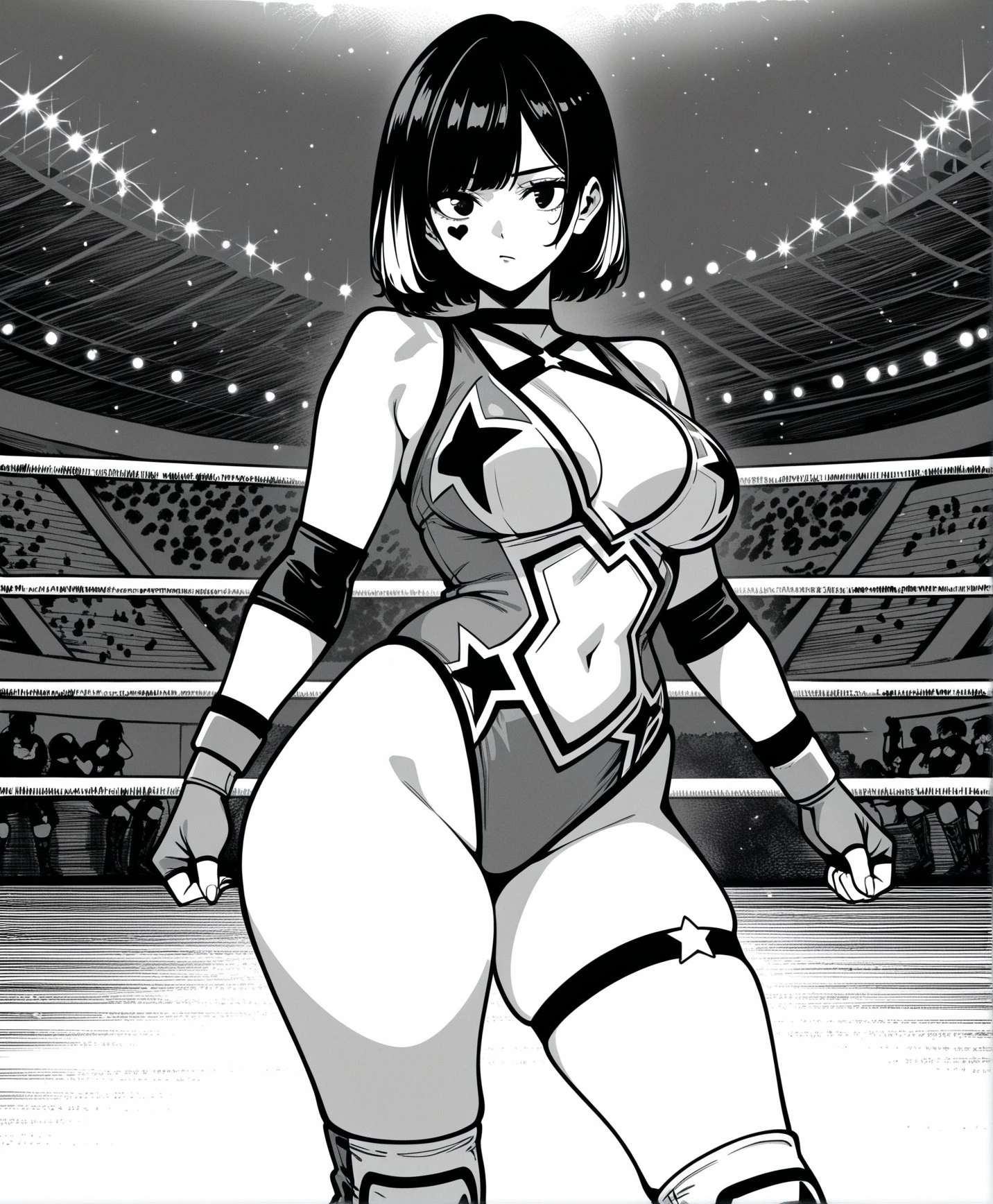 high-cut leotard, star-pattern leotard,wrestler boots,