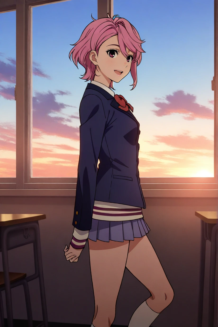 <lora:Aira Shiratori-IL-v1-07:0.7>, ChopioAira, short hair, pink hair, swept bangs, hair between eyes, lips, pink eyes, looking at viewer, small breast, narrow waist,