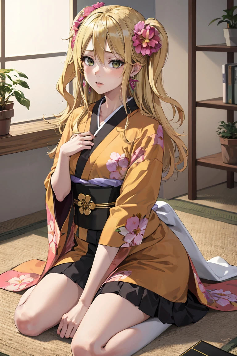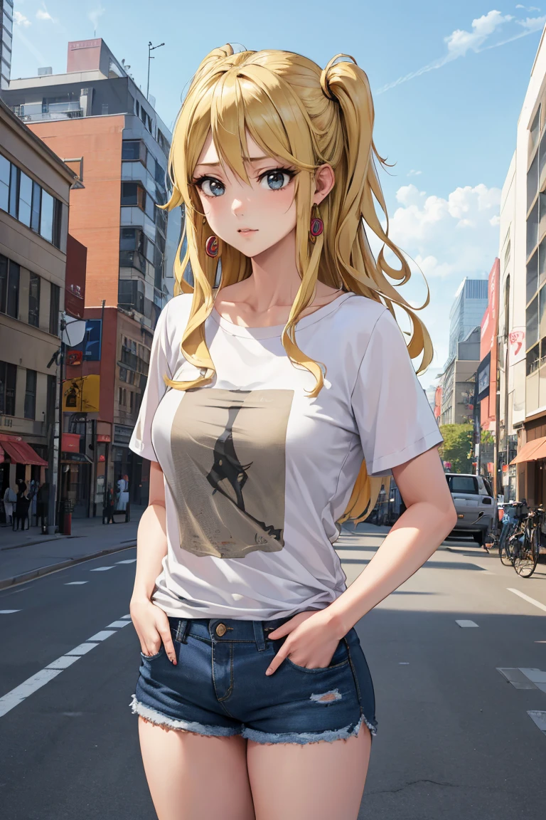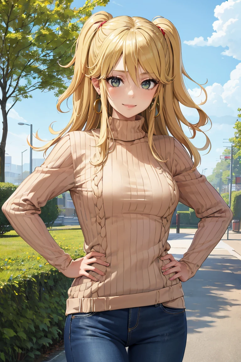 YuzuAihara, blonde hair, long hair, two side up, earringsDefault outfit: