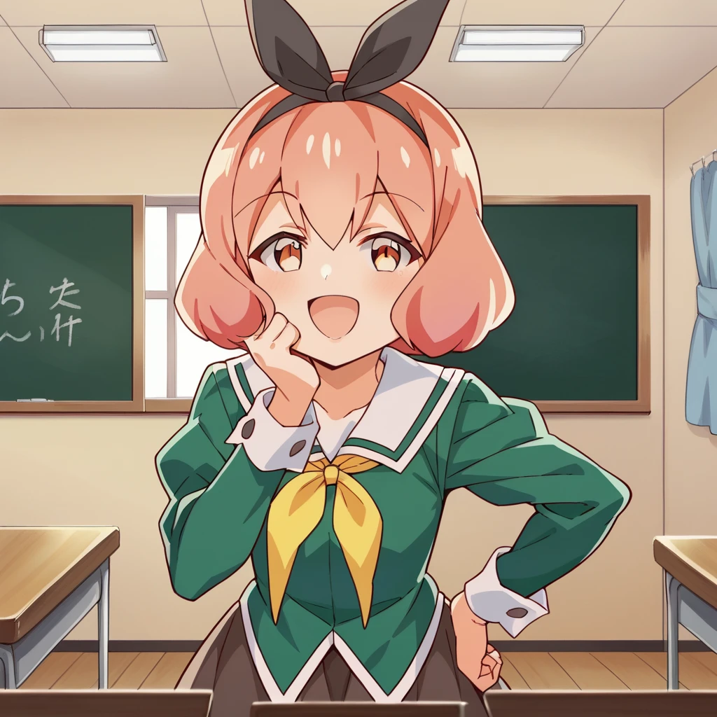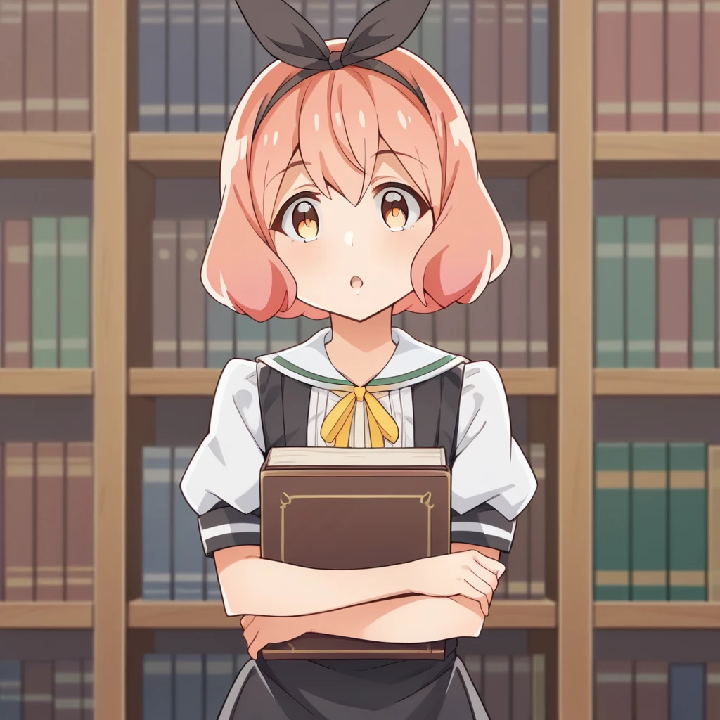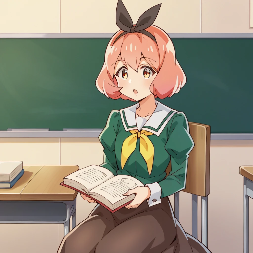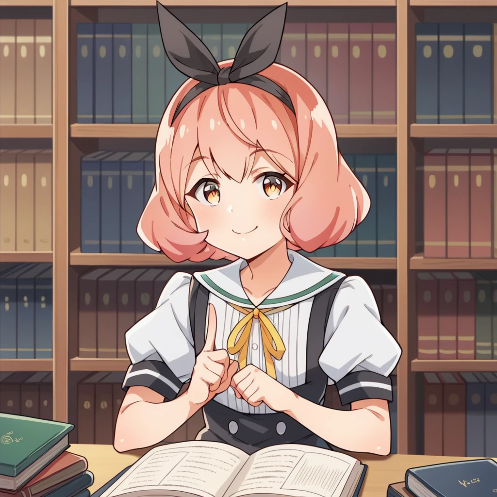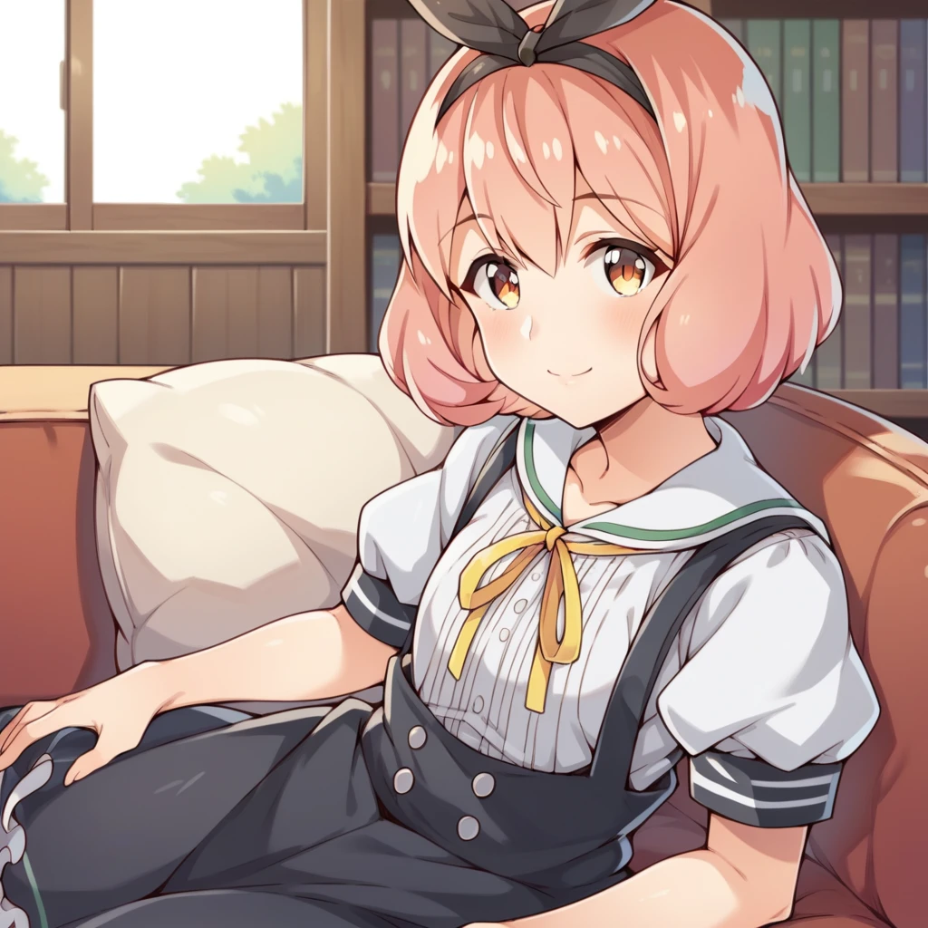 Mai, pink hair, short hair, hairband, ribbon, Optional: Technically you should be using "brown eyes" tag, but I feel like it's better without it ? So see what you like.