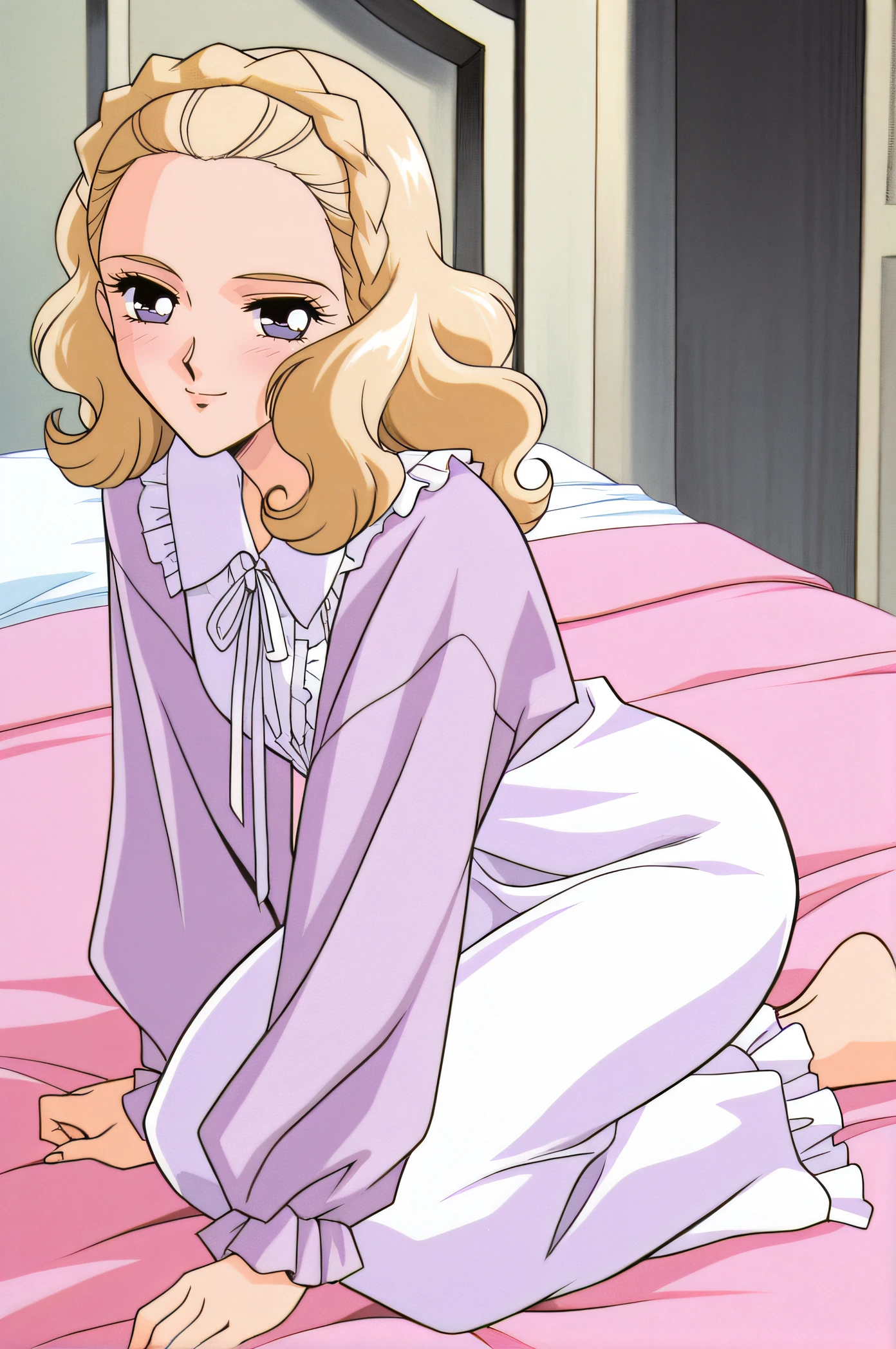 nanami, blonde hair, purple eyes