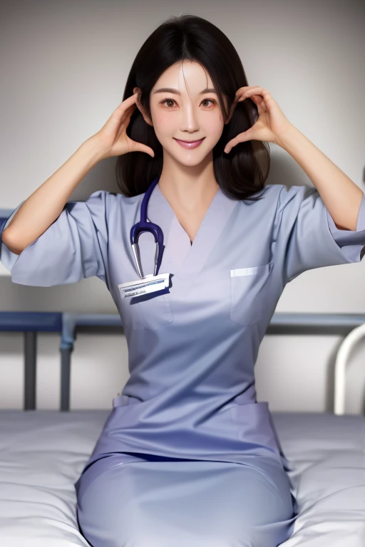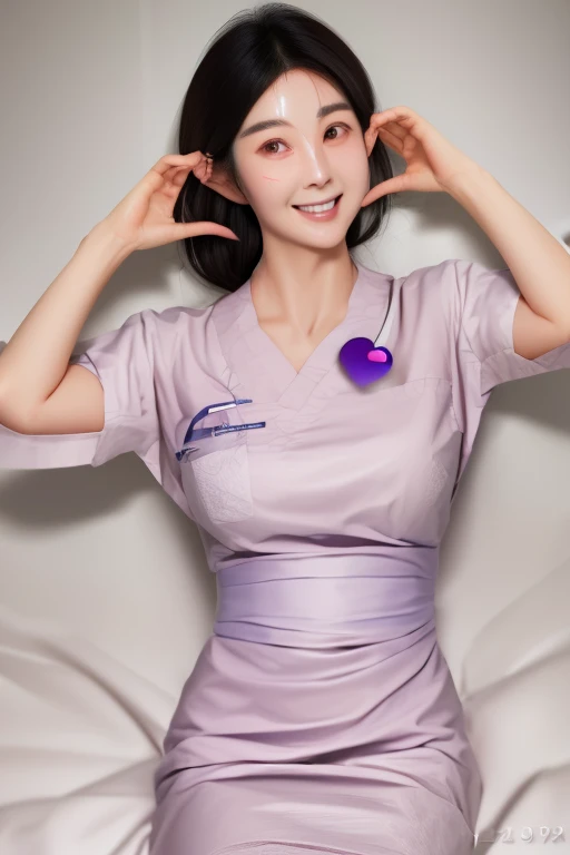 Makes the cheek heart pose, sometimes it is referred to as the Luda Cheek Heart Sign or other such names after the Kpop star that made it popular.