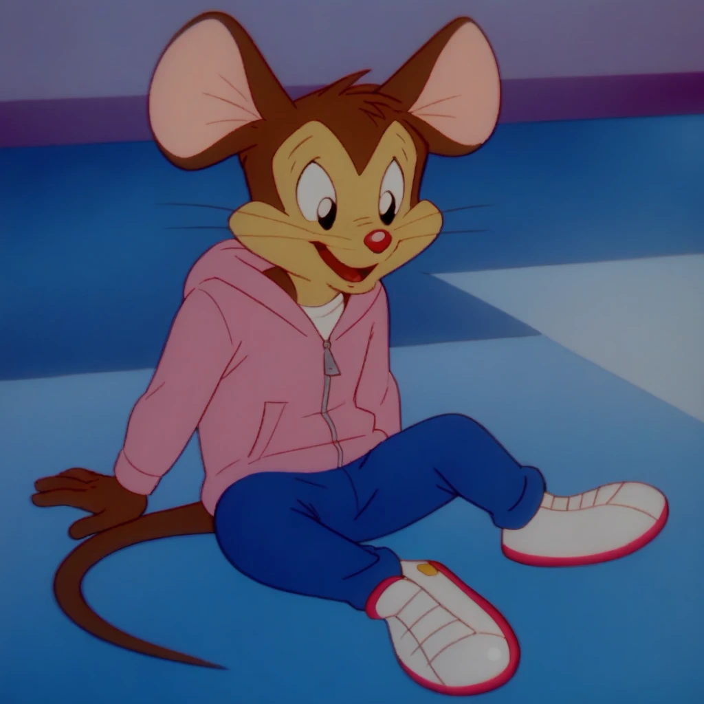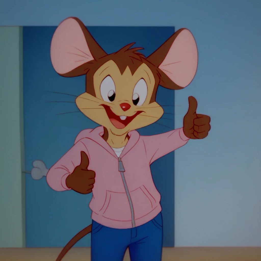 Roy, 1boy, solo, furry, mouse ears, black eyes, white shirt, pink hoodie, zipper