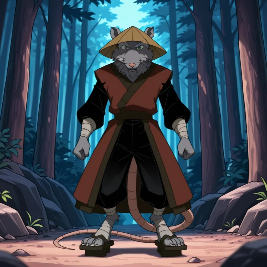 SplinterTMNT03IL, semi-anthro, male, rat boy, grey fur, green eyes, goatee,
