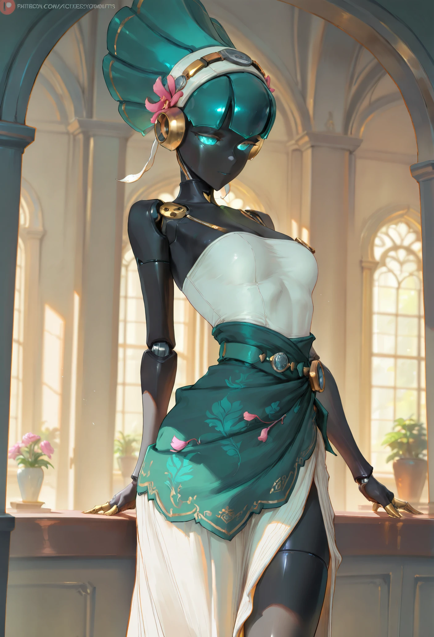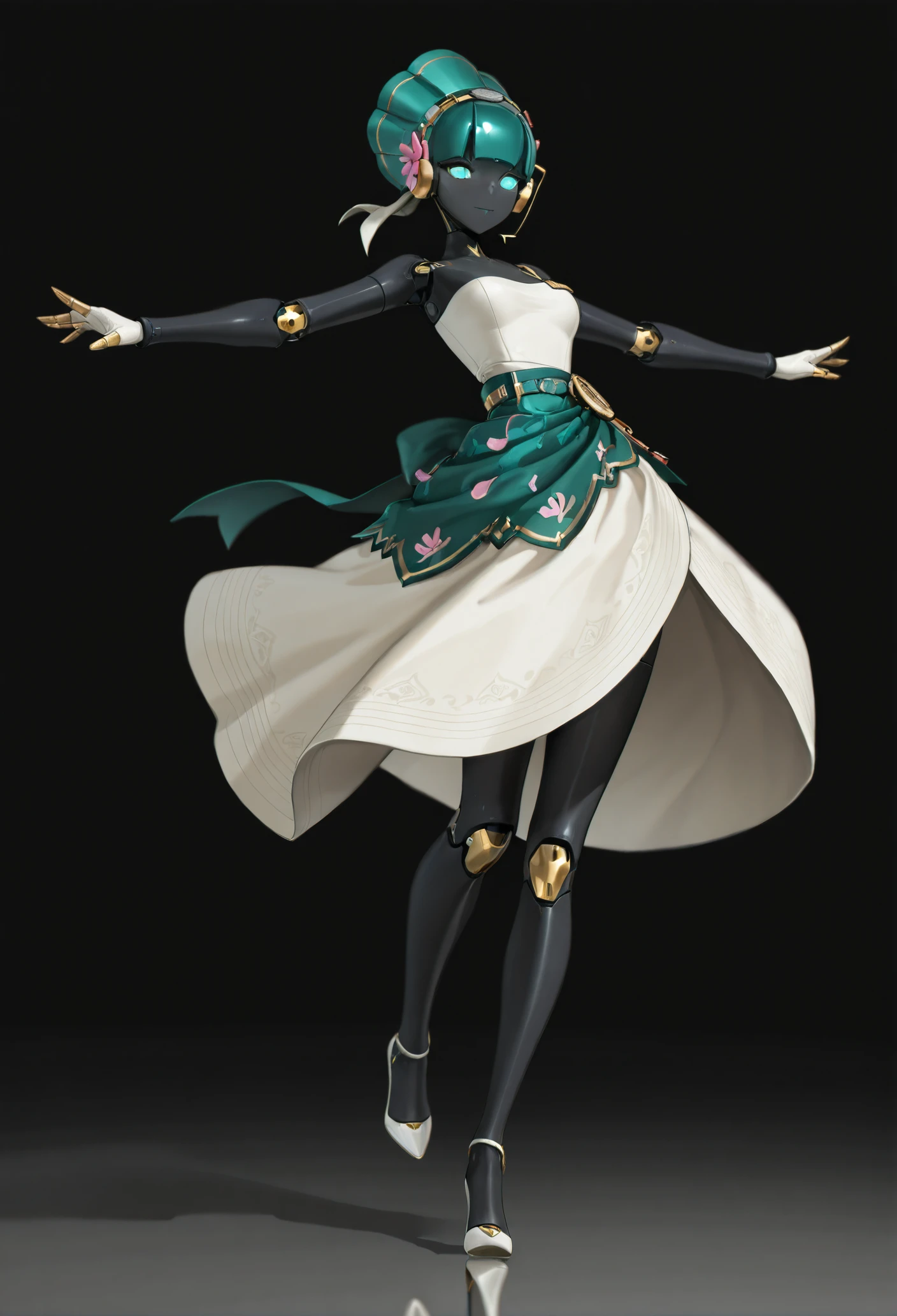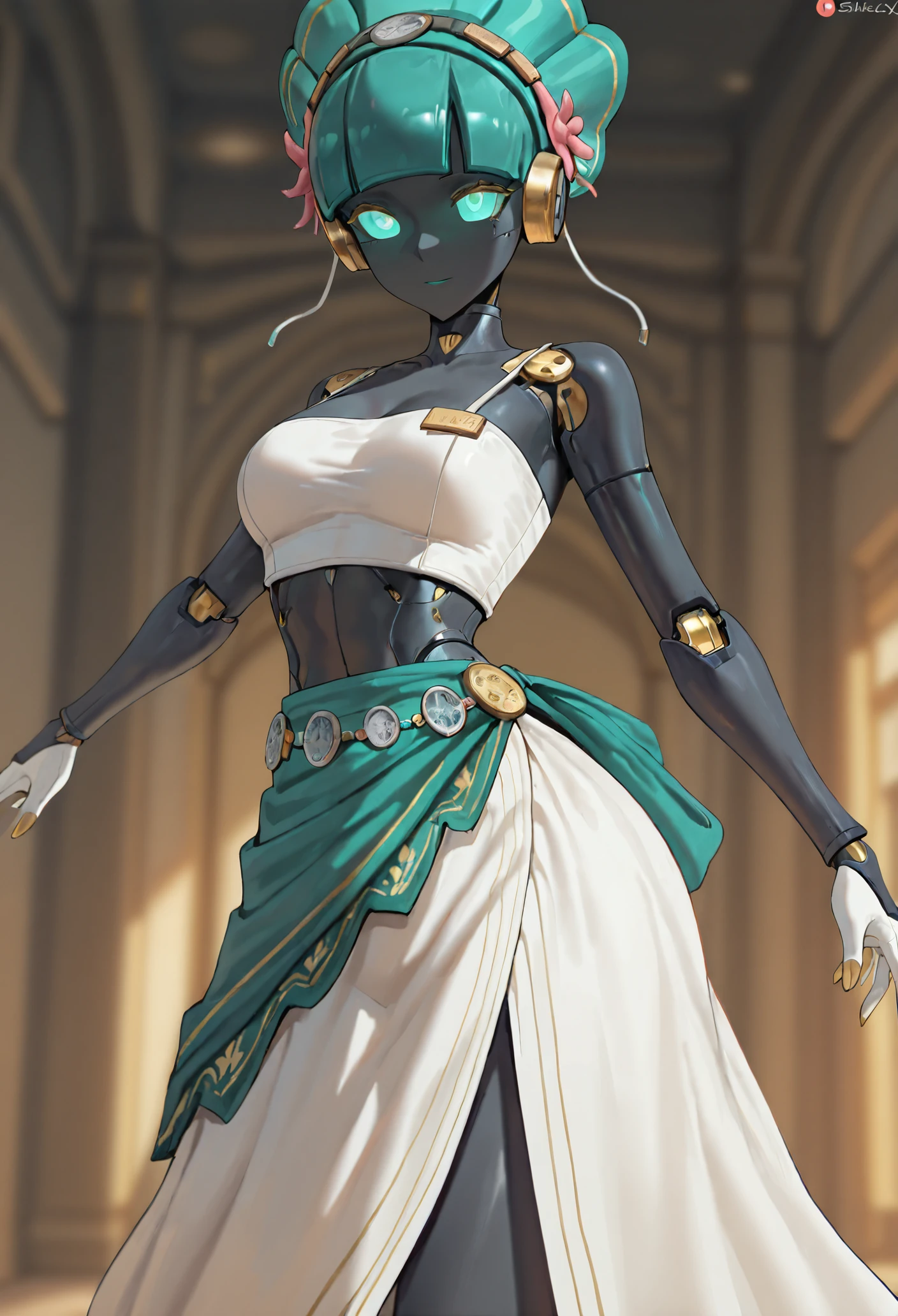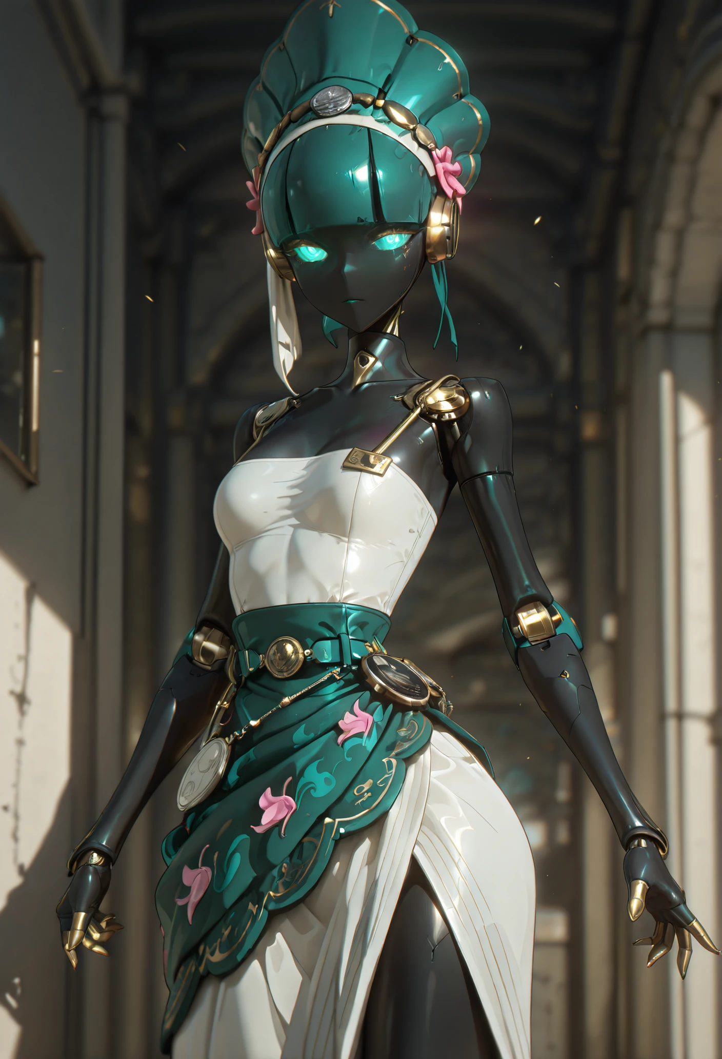 Base: black skin, glowing eyes, aqua eyes, aqua hair, mechanical body, robot girl, robot joints