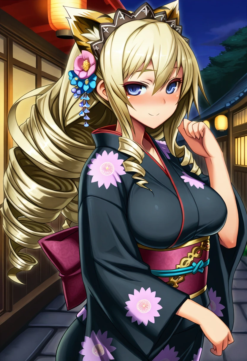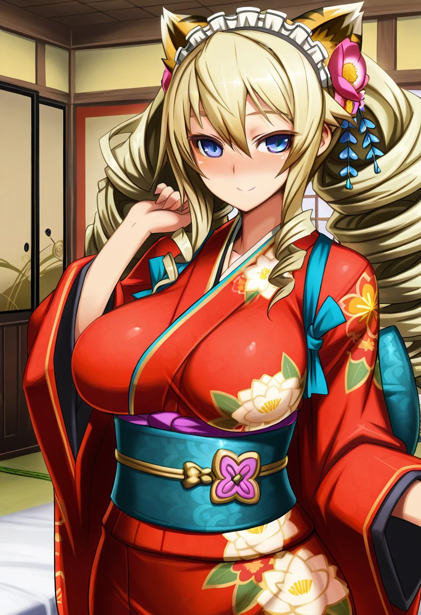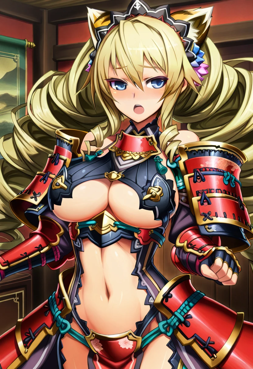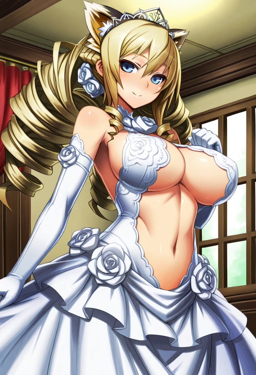naotora_muramasa, blonde hair, blue eyes, drill hair