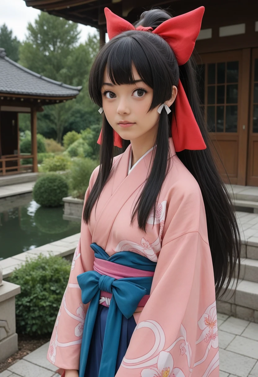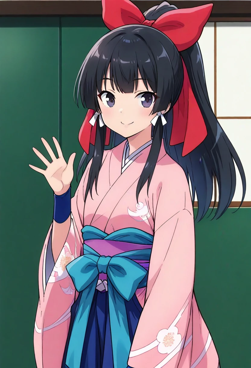 koyae, long hair, ponytail, sidelocks, red hair bow