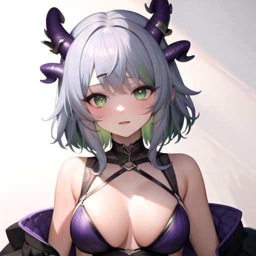 froot,apricot,horns,green eyes,multicolored hair,blue and green hair
