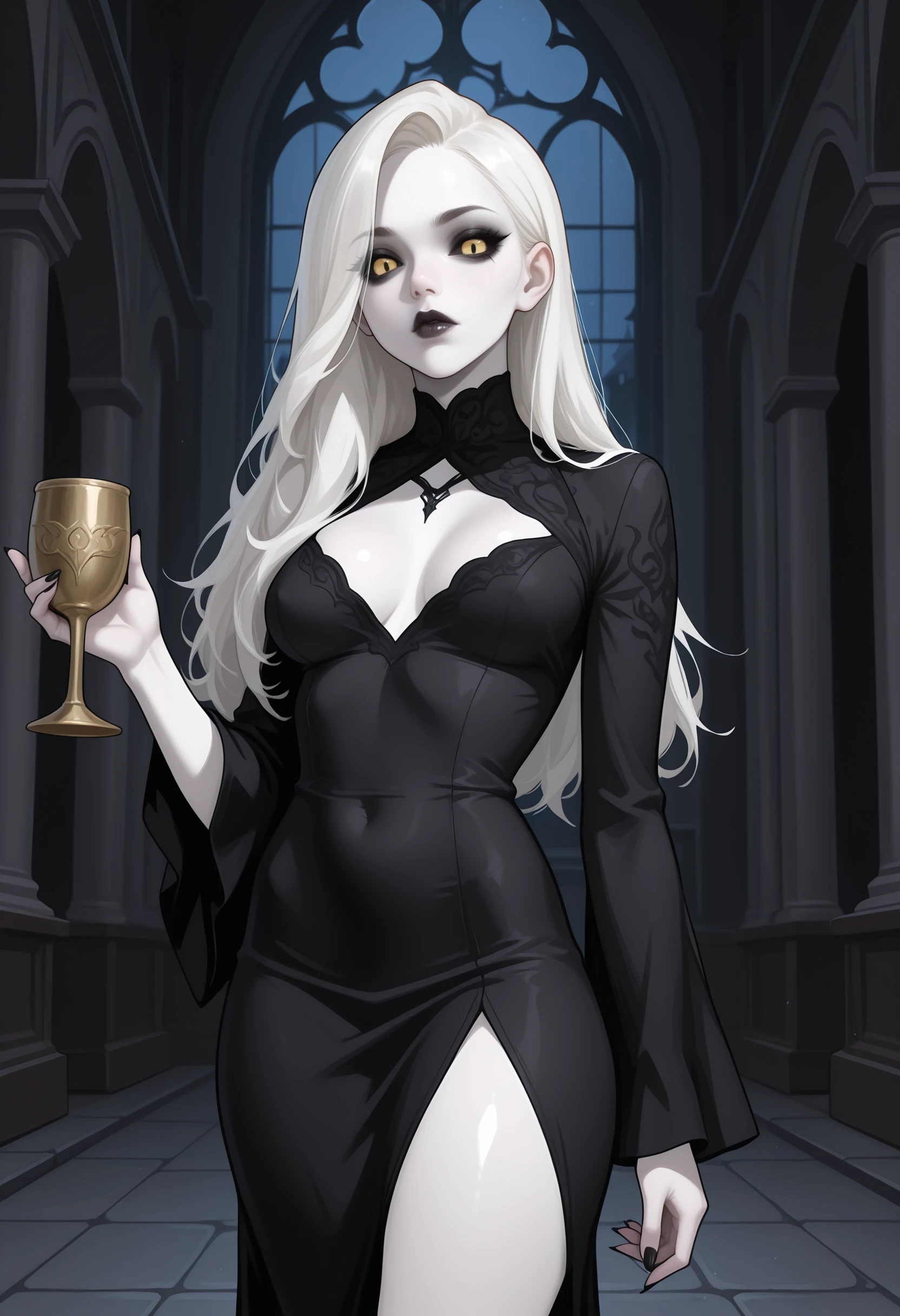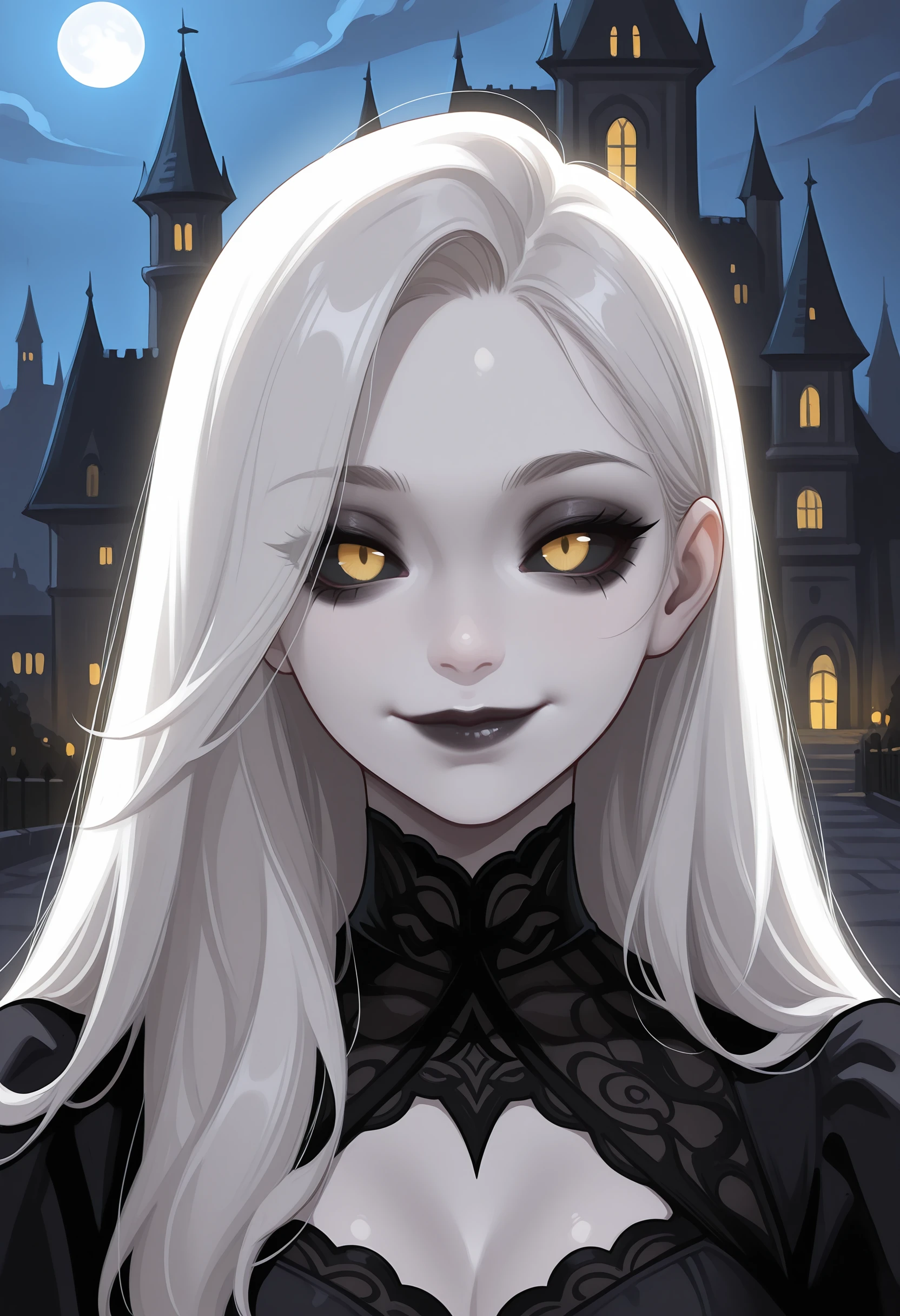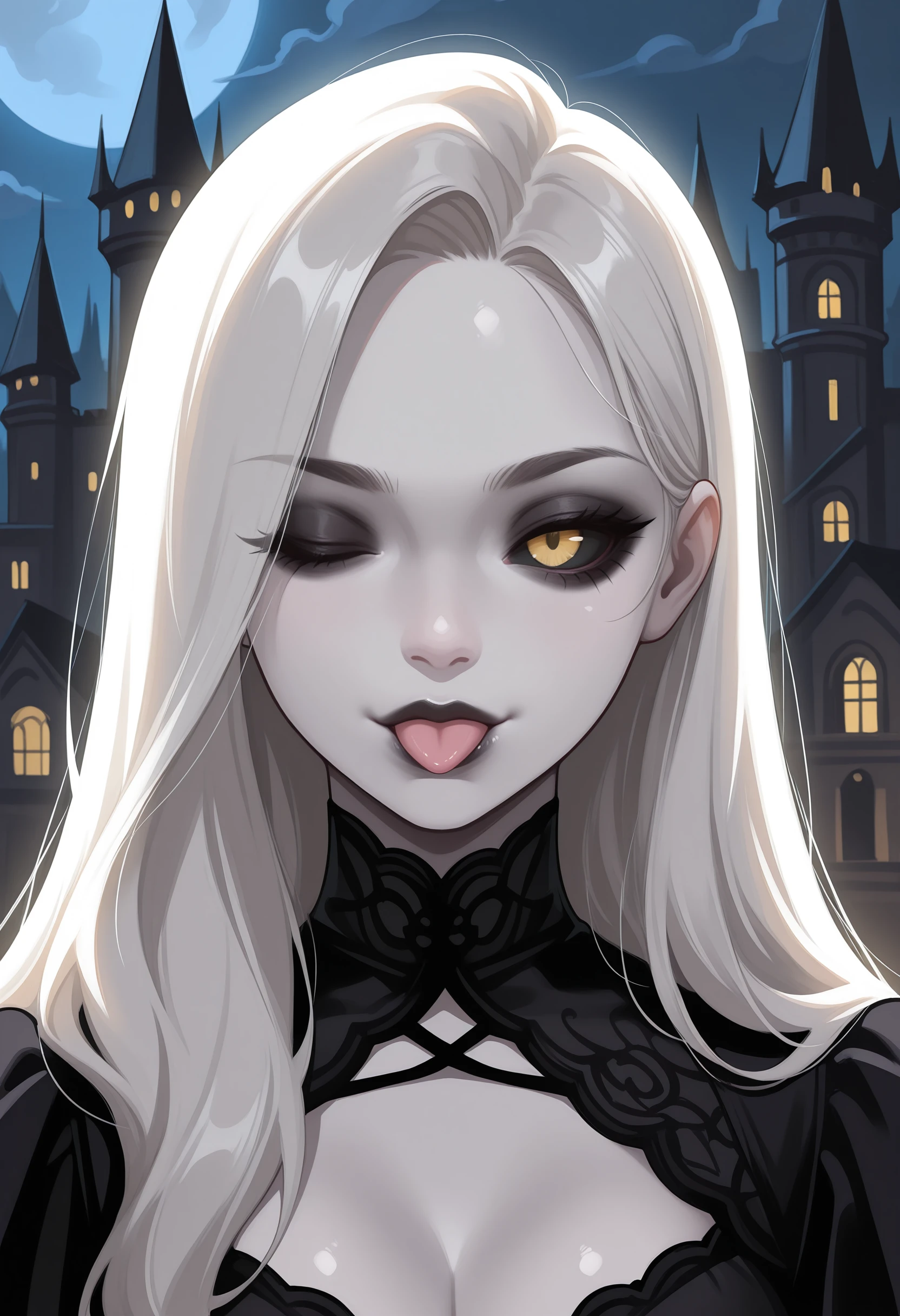 This is my original character--the mascot for the Gehenna checkpoints. She is an ancient vampire who enjoys blood and wine and moonlight walks. I originally just called her Gehenna Girl but now she has a name: Heldis