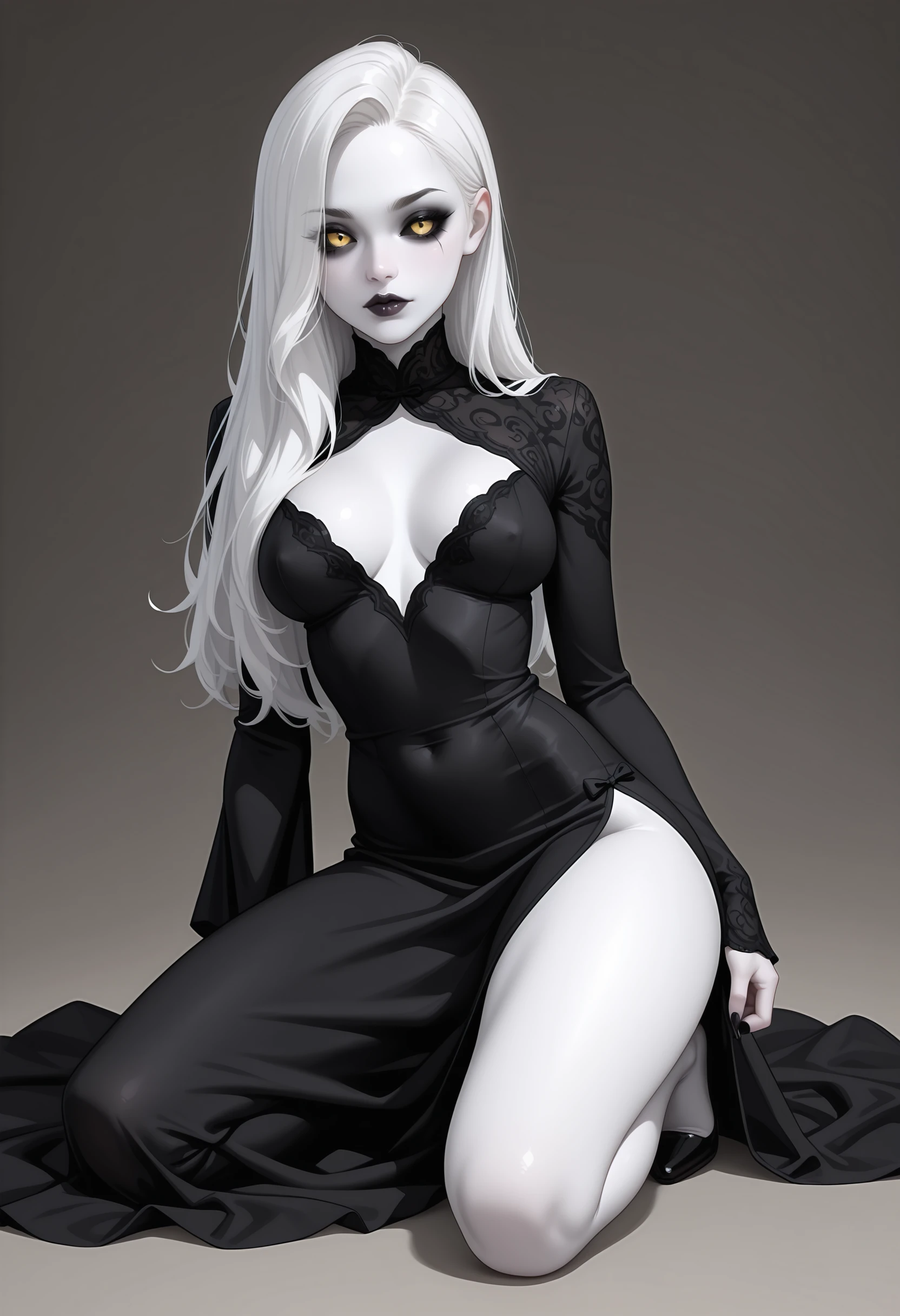 The look of her should be quite consistent but the dress tends to do a little of what ever it wants, but I don't mind; she can use different dresses, although it should get the cleavage opening mostly.