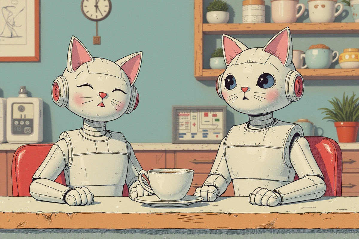 This style combines intricate line work with a soft, retro-inspired color palette, creating illustrations that feel both nostalgic and slightly surreal. The art features hand-drawn qualities blended with digital techniques, often depicting characters or objects with a unique fusion of organic and mechanical elements. Textures reminiscent of old prints or worn surfaces add depth, while limited color schemes - typically pastels and muted tones - evoke a dreamlike, retrofuturistic atmosphere.