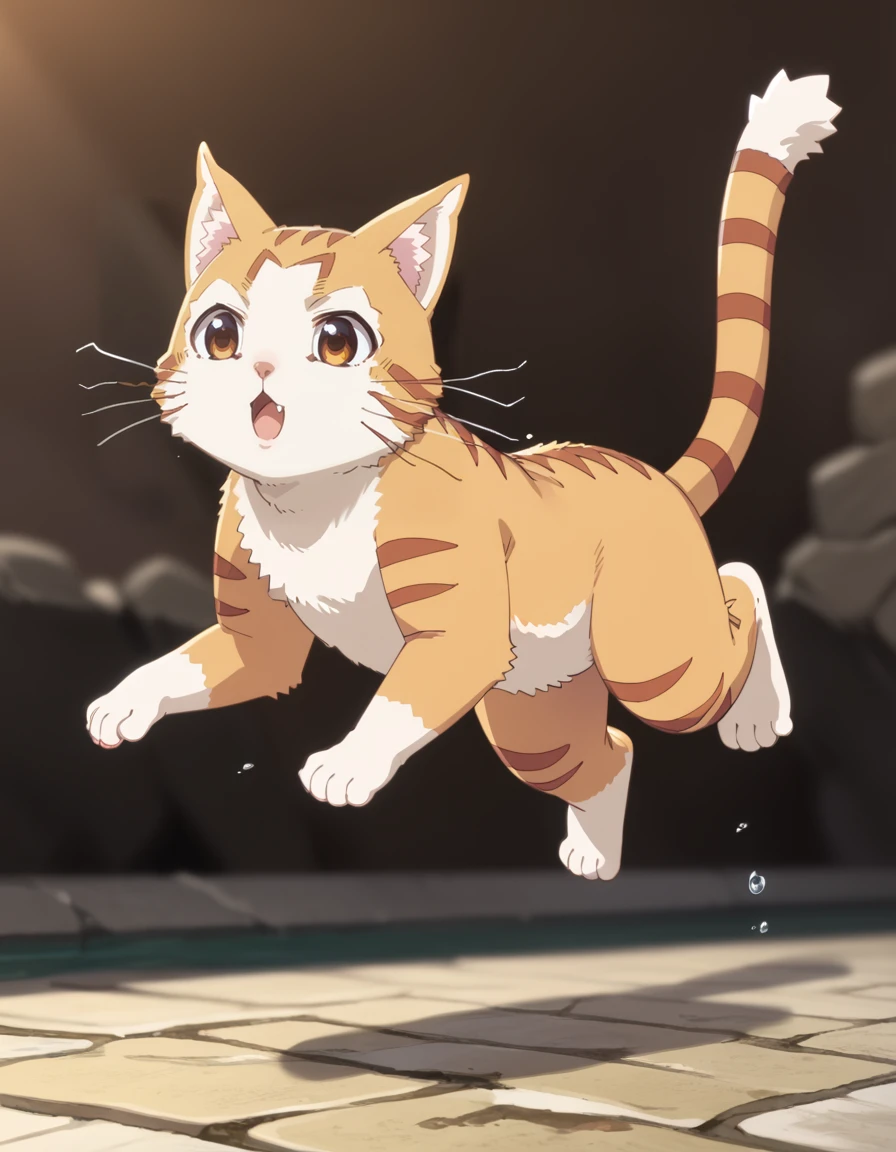 tama (beheneko), cat, orange fur, white fur, brown eyes, brown stripes, pointy ears, cat ears, whiskers, white muzzle, fluffy tail, striped tail