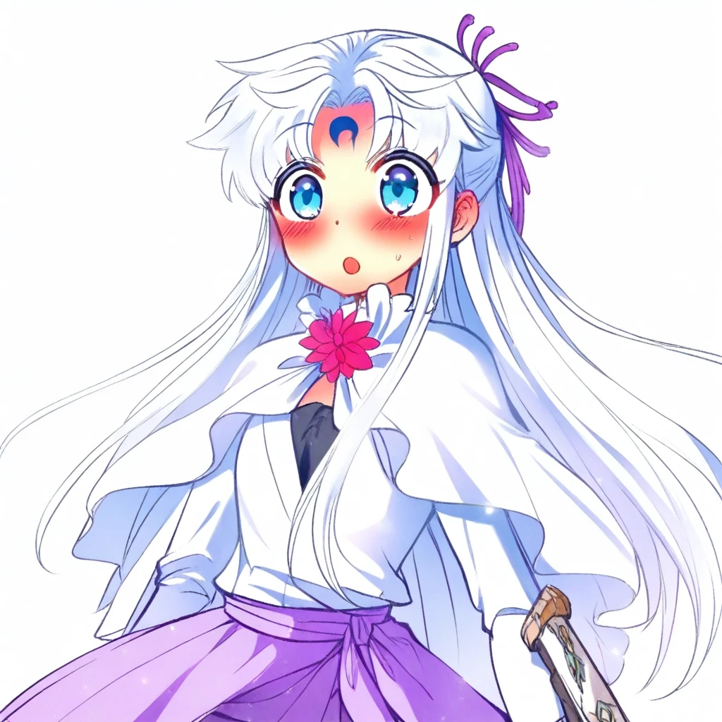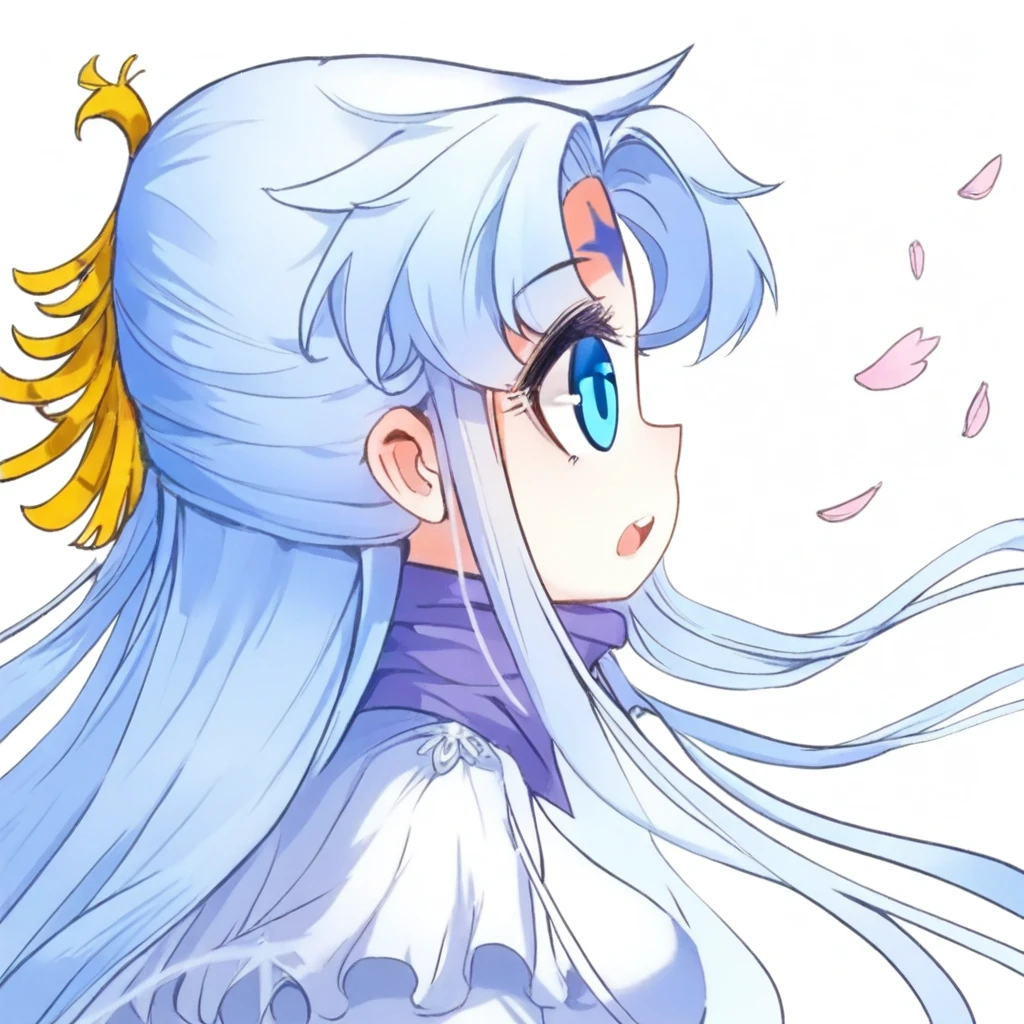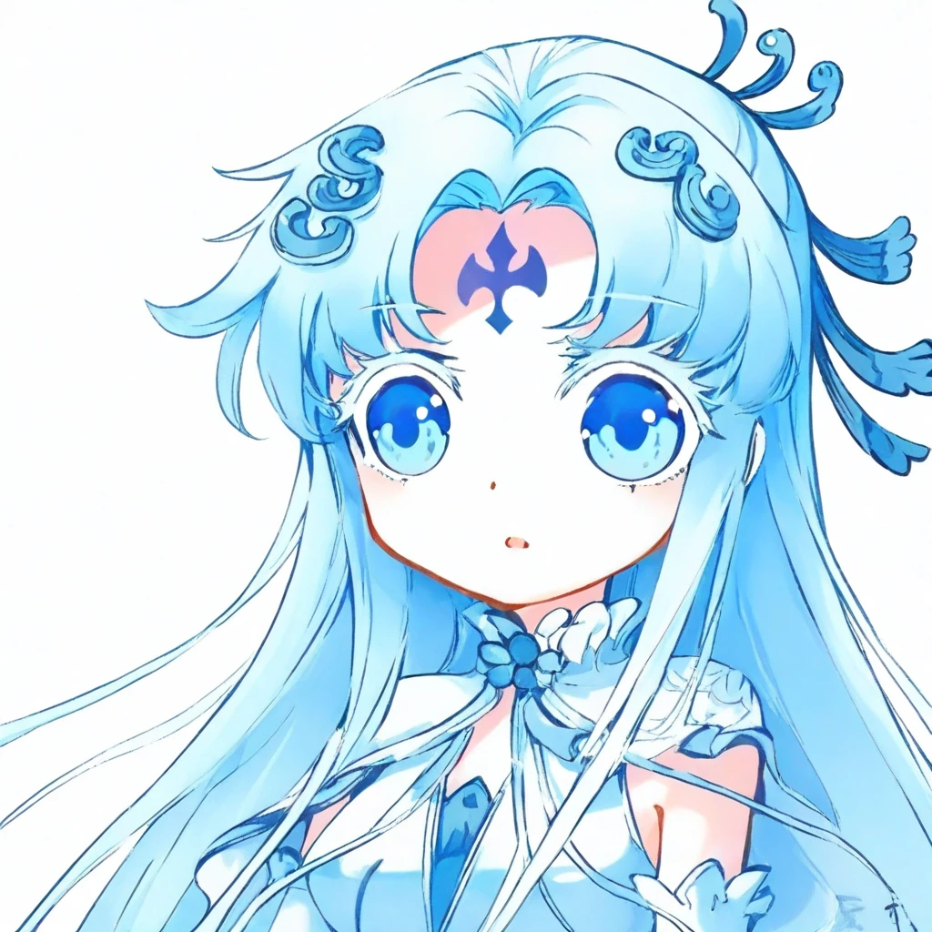 提示词:blue eyes white hair 1girl solo long hair blue eyes gloves white background blue hair hair ornament elbow gloves simple background white gloves forehead mark