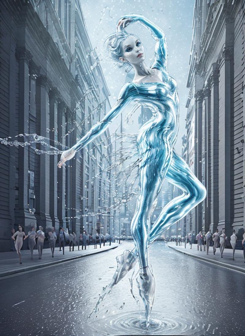 Make sure and always include the word water elemental somewhere in the prompt. For people always preface the subject with water elemental, example "water elemental man walking", "water elemental girl playing in the backyard", etc...