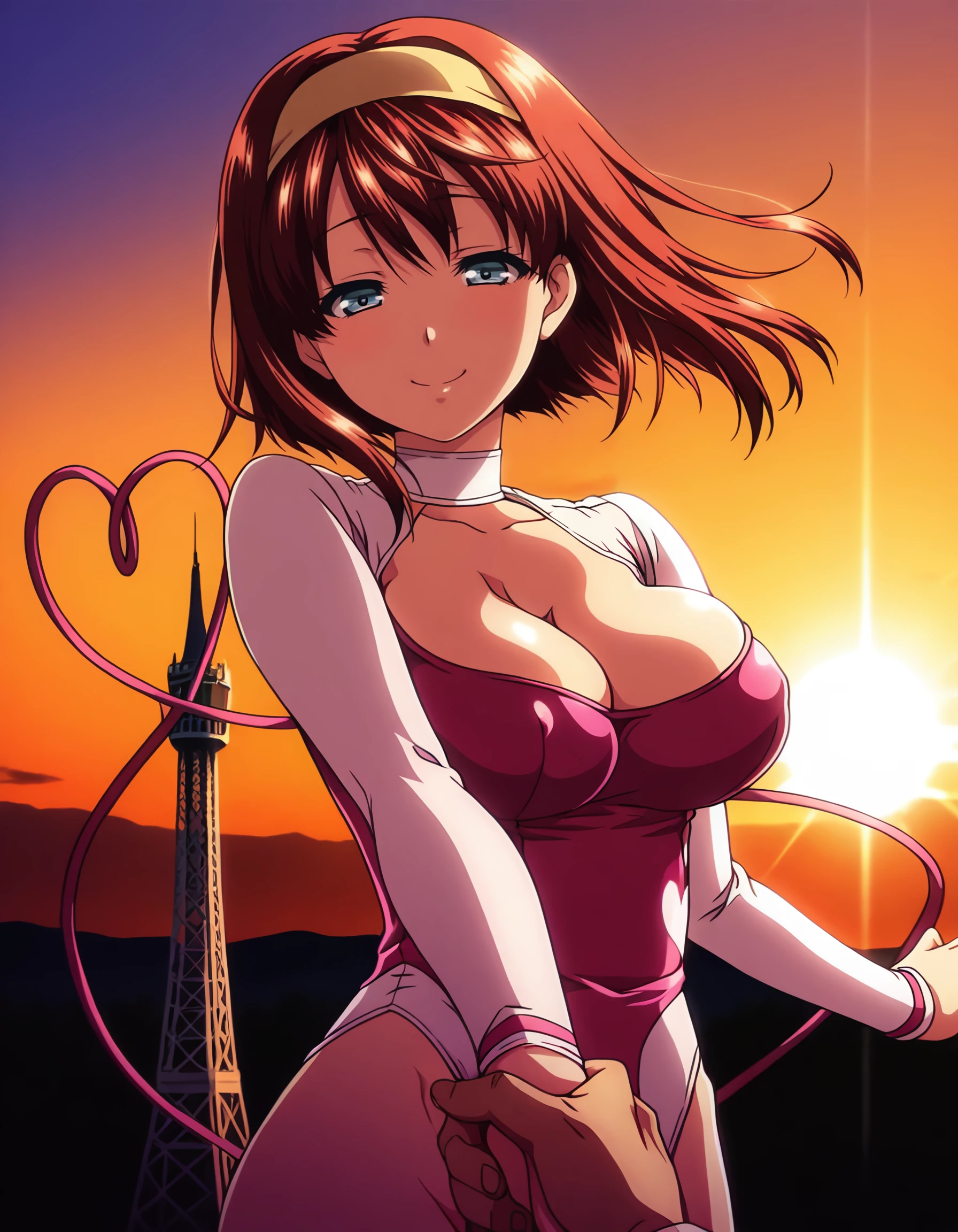 tsundero_-_aoi, short_hair, brown_hair, red_hair, blue_eyes