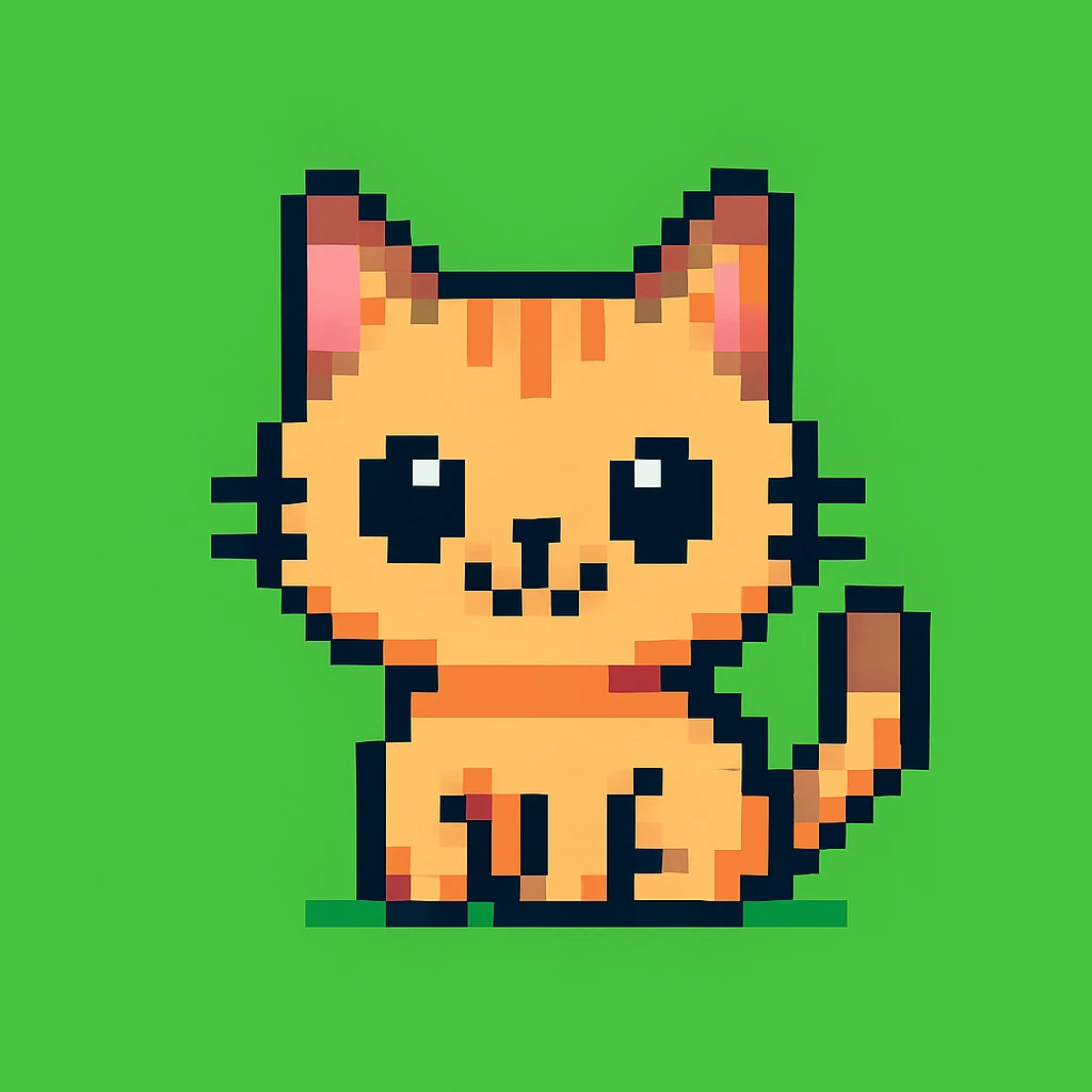 - "PIXART cute cat, pixel art, game sprite"