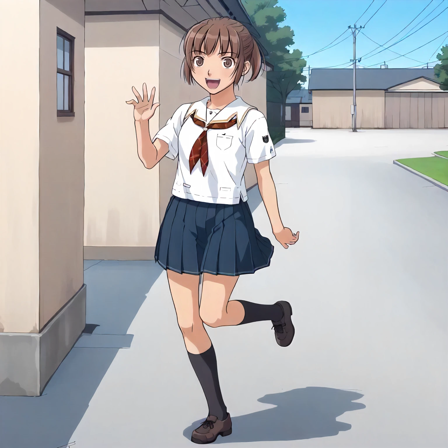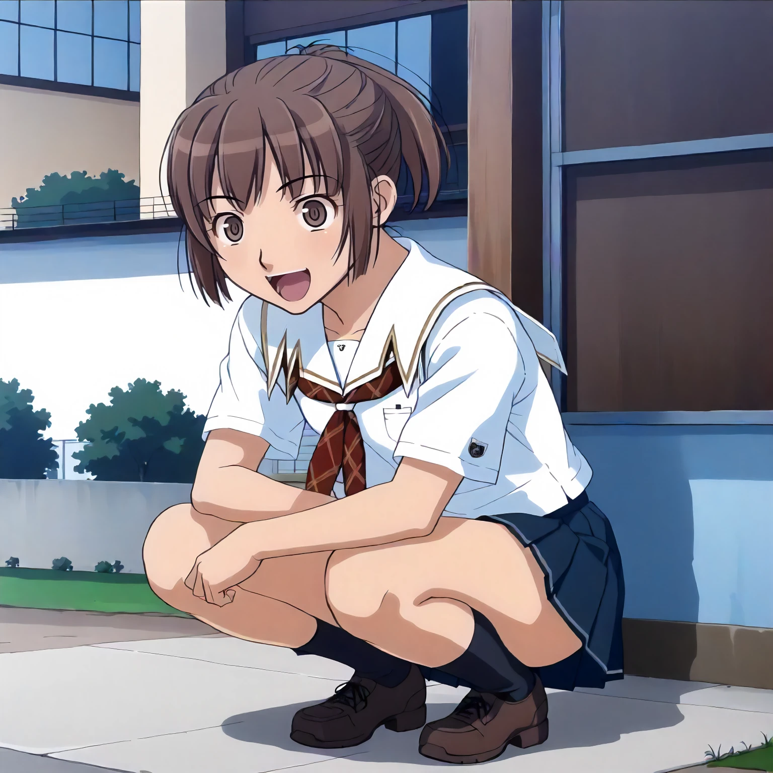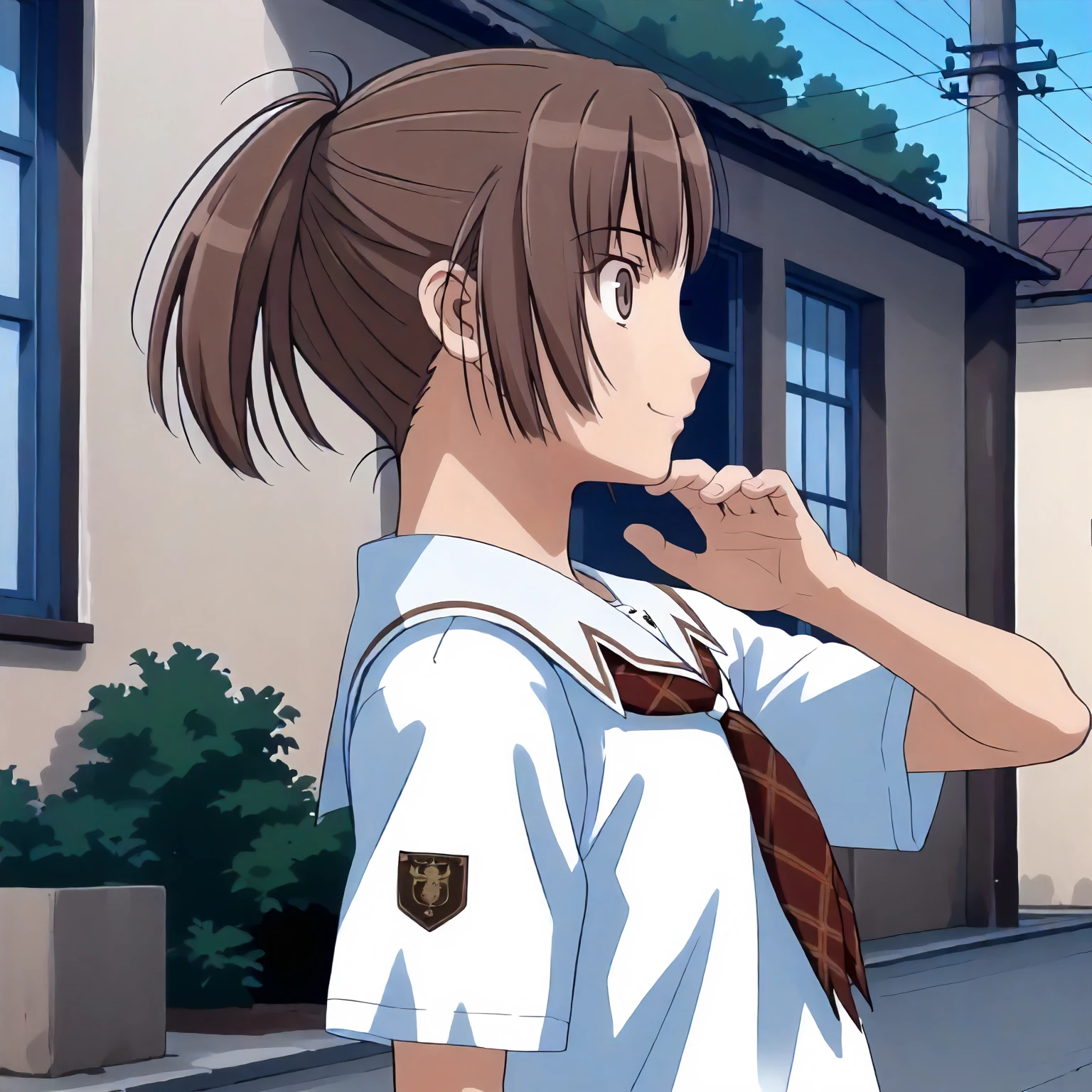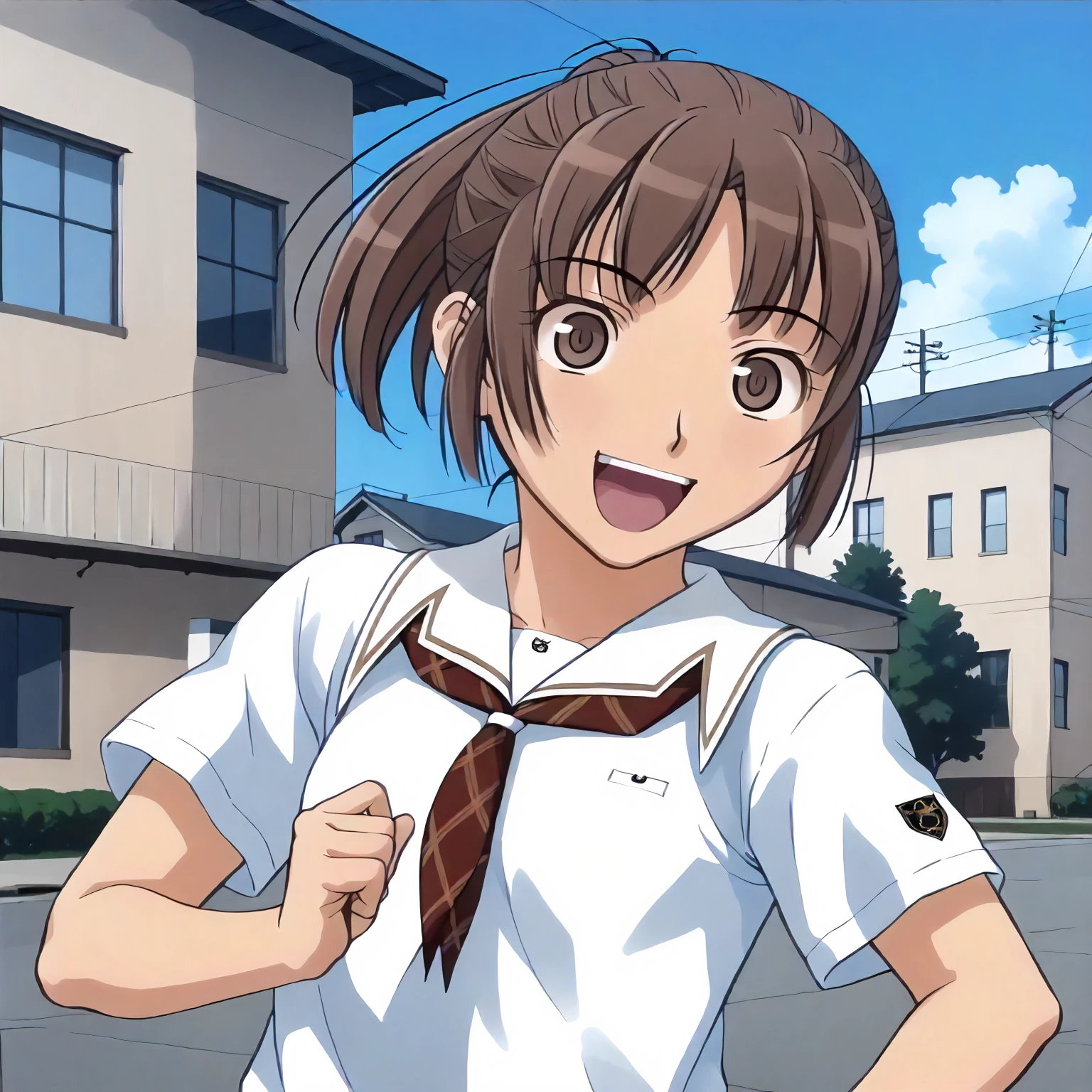 AsukaSakino,1girl,brown hair,short ponytail,brown eyes,