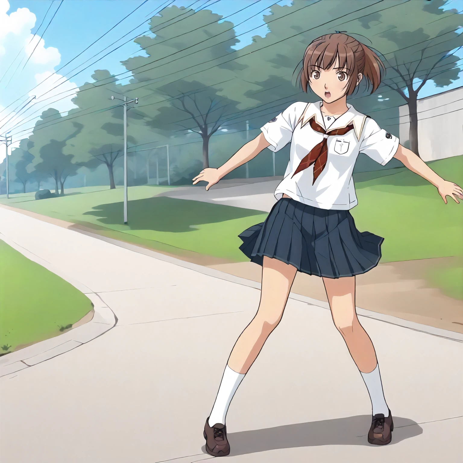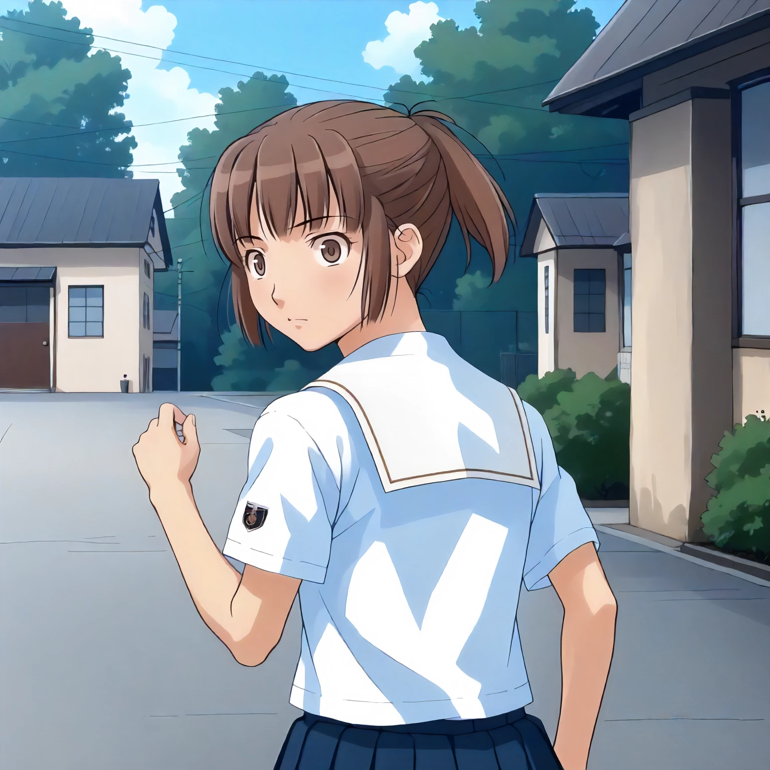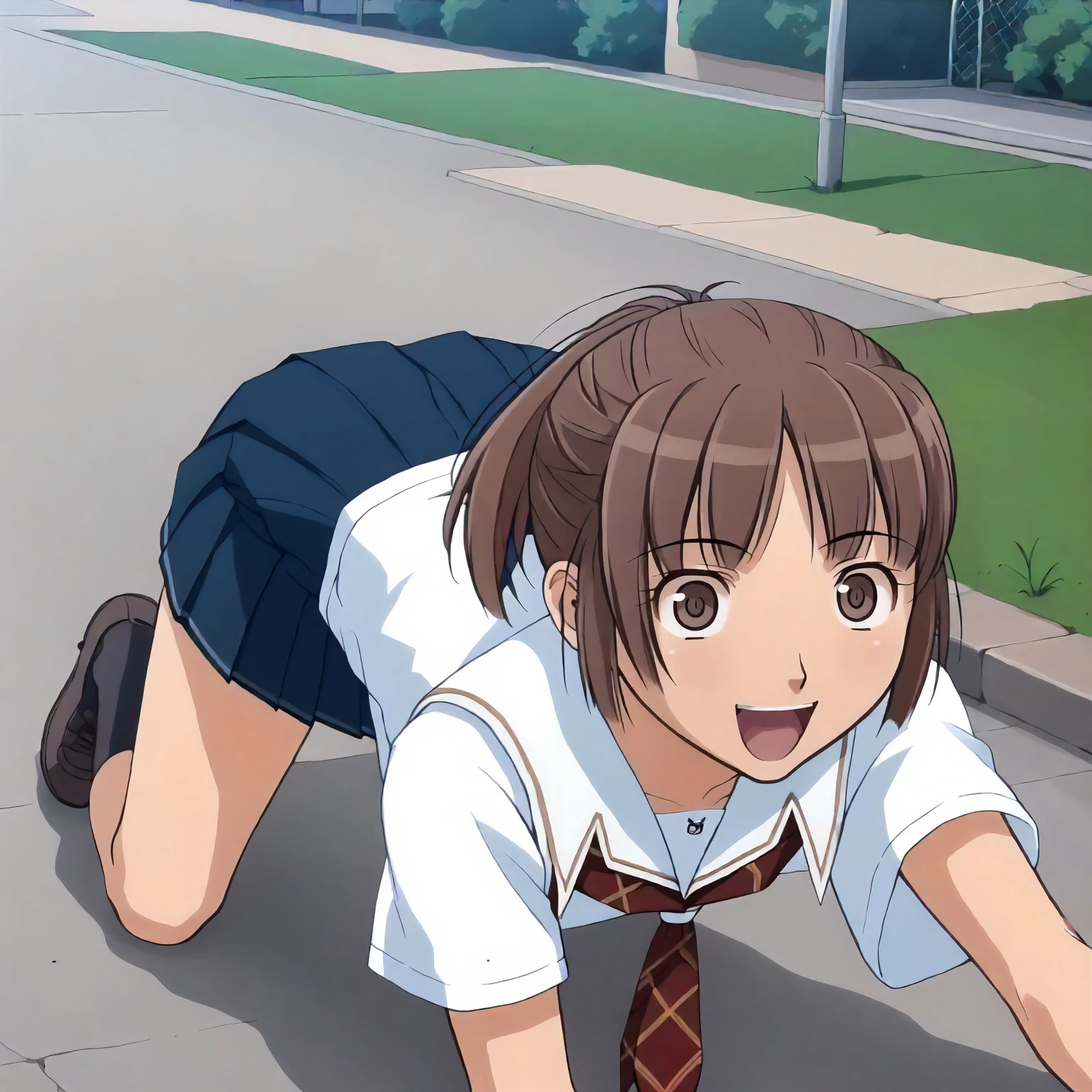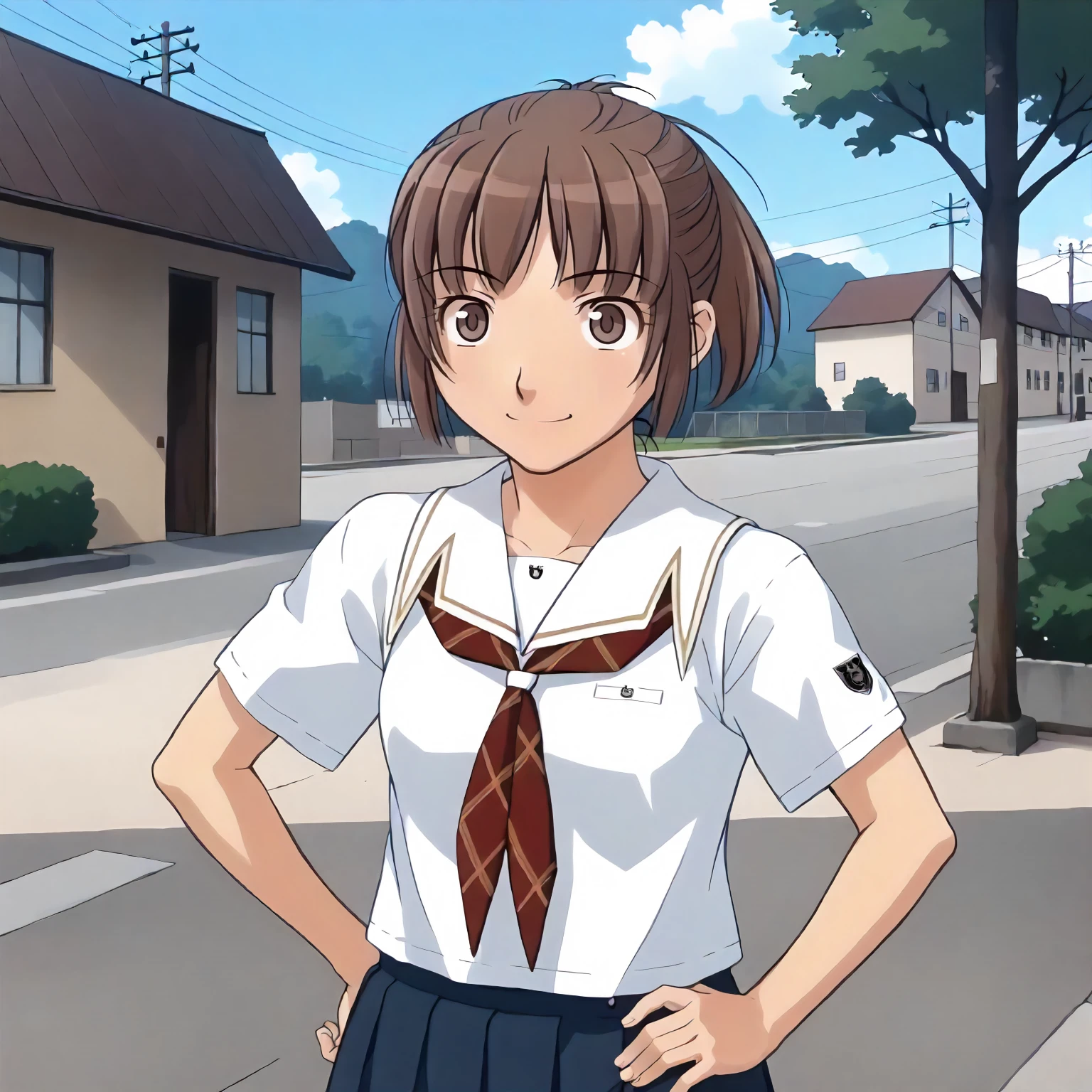 AsukaSakino,1girl,brown hair,short ponytail,brown eyes,