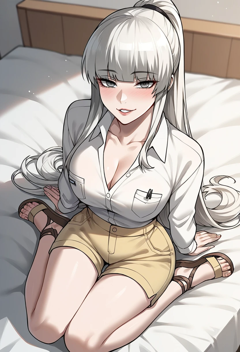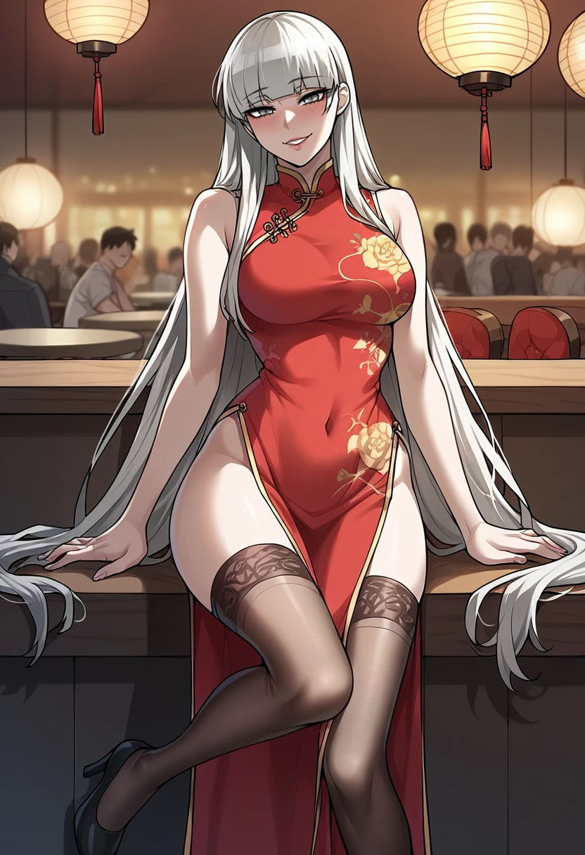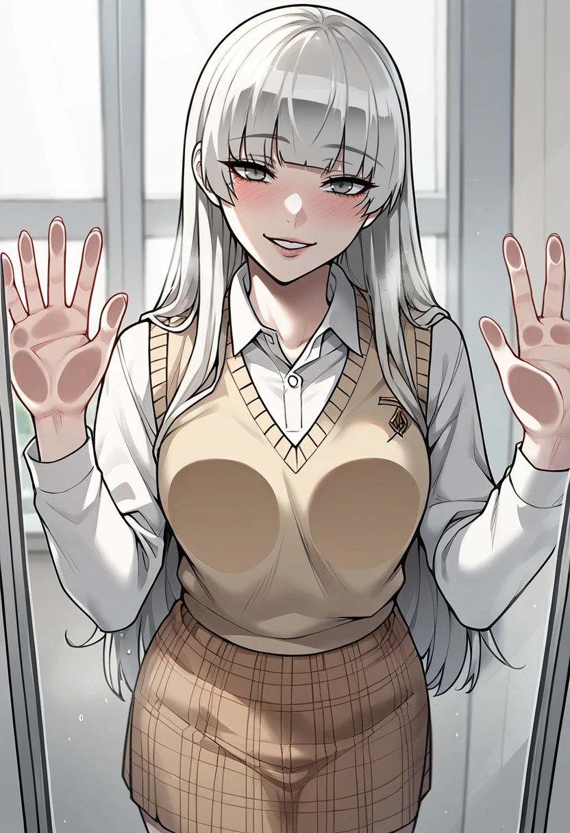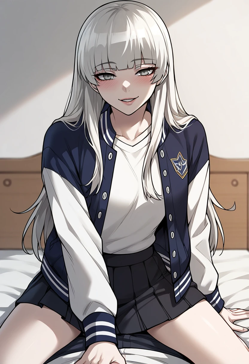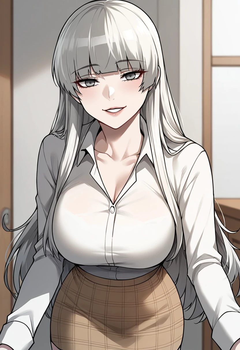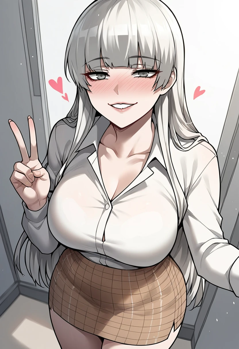 jinseohyeon, long hair, white hair, blunt bangs, grey eyes