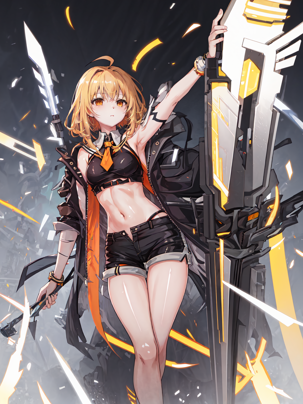 haru_estia, shorts, long hair, navel, coat3.Desireworker