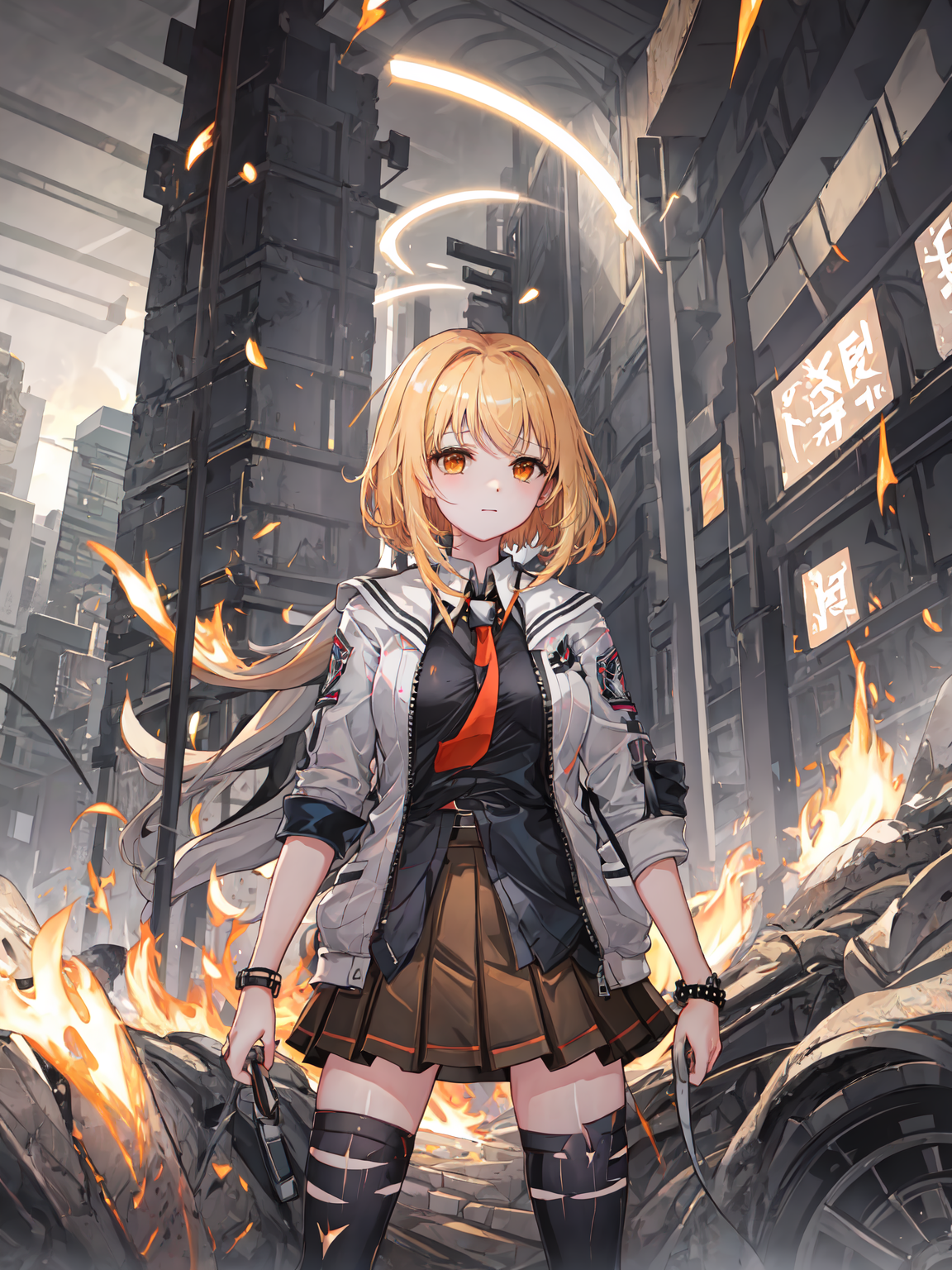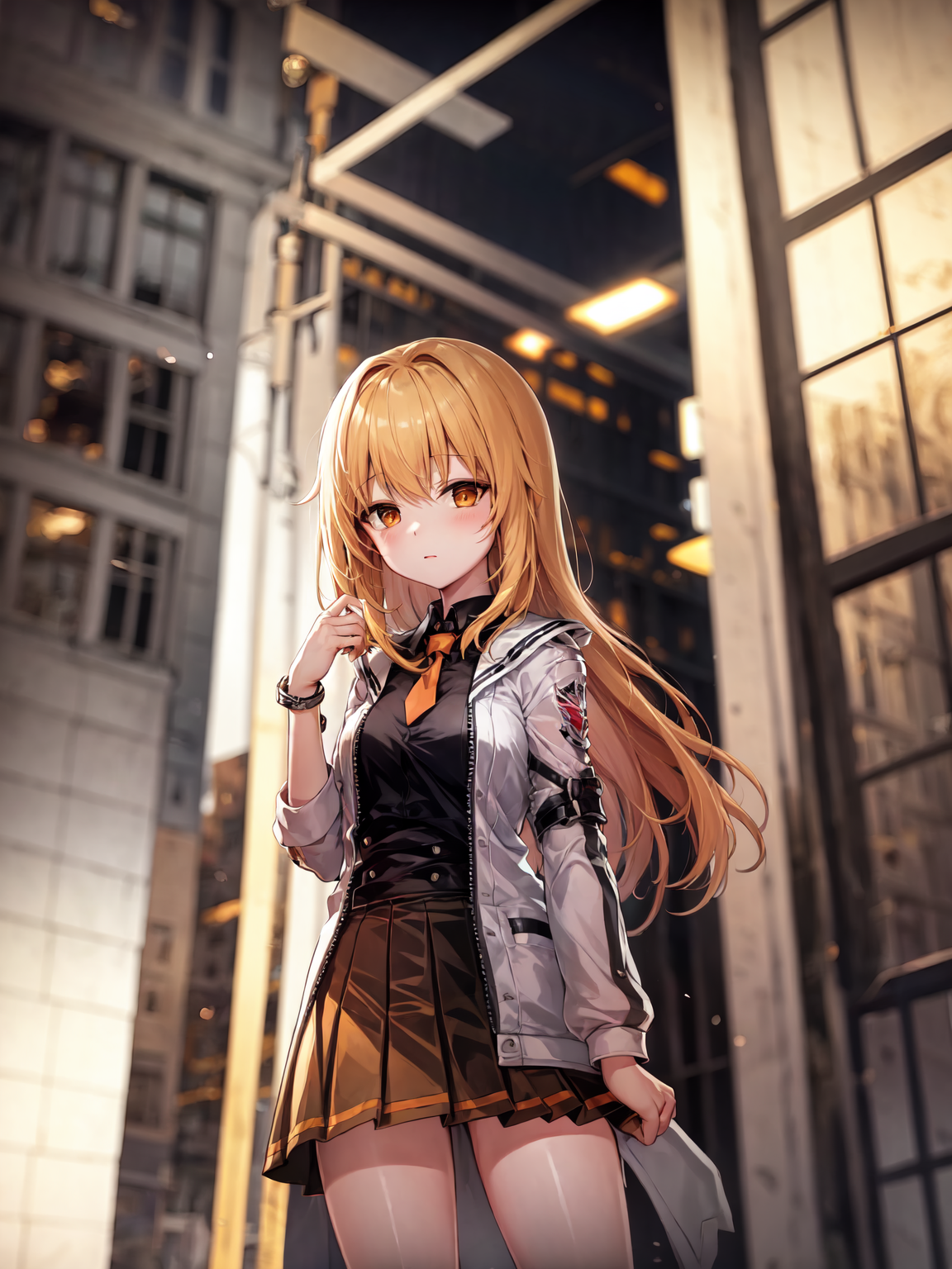 haru_estia, skirt, white_jacket,