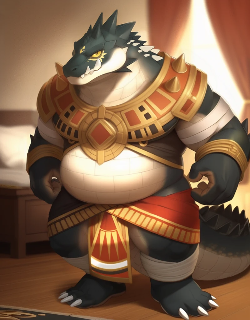 Trigger words : sebek, multicolored shoulder armor, multicolored loincloth, yellow male swimwear